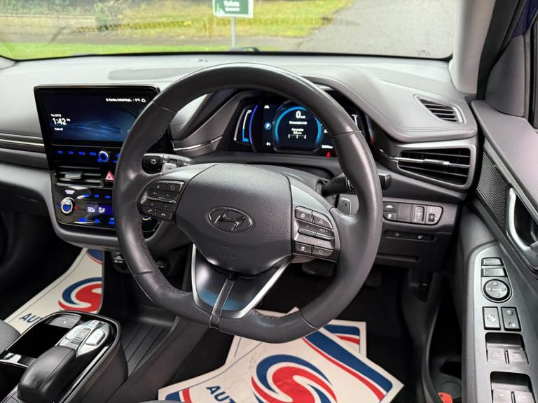 Just arrived in our stock is this 2022(22) Hyundai IONIQ 38.3kWh Premium Auto 5dr with 12,000 miles with full history 2 keys immaculate vehicle inside out viewing is highly recommended 8.9 Apr finance available to arrange viewing visit MKS car sales Sinclair street Dundee Dd23da over 500 5 star reviews.10.25in Widescreen Navigation with Bluelink and Mapcare100 Percent MapCare Programme - 10 Years of Map Updates12V Power Outlet16in Alloy WheelsABS - Anti-Lock Brake SystemAir Conditioning - Driver-Only ModeAir Conditioning - Single Zone Climate ControlAirbags - Front - Front Side - Curtain and Drivers KneeArm Rest - Front with StorageAutomatic De-Fog System for Front WindscreenAutomatic Dimming Rear View MirrorAutomatic Headlights with Dusk SensorAutomatic Windscreen Wipers with Rain SensorAutonomous Emergency BrakeBluetooth ConnectivityBumper AccentsCCS Combo Rapid Charge Port - 50kWCentre Console - Tablet StorageCharging Cable - 7 Pin Type 2Charging Cable - Emergency 3 Pin Connector - ICCBCruise Control - Smart Adaptive Speed Control with Stop and Go FunctionCup Holders - FrontDaytime Running Lights - LEDDeadlocksDoor Mirror Puddle LightsDoor Mirrors - Body ColouredDoor Mirrors - Electric Adjustment and Heated with Power FoldDoor Scuff - Chrome with IONIQ LogoDrive Mode Select - ButtonDriver Attention Alert - DAADrivers Seat Height Adjustment - ManualDrivers Supervision Instrument Cluster with TFT Display - 7inElectric Parking Brake with Auto Hold FunctionElectric Power Steering with Variable Drive ModesElectric Windows - Front and RearElectric Windows - Front with Anti-Trap and One Touch ControlsElectronic Stability Control - ESCExterior Door Handles - Body ColouredFog Lights - LED RearFront Head Restraints - Vertical and Horizontal AdjustmentFront Passenger Airbag De-Activation SwitchFront Passengers Seat - HeatedFront Seat Back Pockets - Drivers SeatFront Seat Back Pockets - Passengers SeatHAC - Hill-Start Assist ControlHead Restraints - Rear with Vertical AdjustmentHeadlights - Full LEDHeated Rear WindscreenHeated Steering WheelHigh Beam AssistIndicator Lights - Door Mirror - LEDInterior Door Handles - Chrome EffectInterior Light - CentreInterior Light - Luggage CompartmentInterior Light - Map Reading LightsLane Departure Warning System with Lane Keeping AssistLeather Wrapped Steering WheelLuggage NetParking Sensors - RearParking System - Rear Camera and Guidance SystemPassenger Seat Height Adjustment - ManualPhone Connection - Android AutoPhone Connection - Apple CarPlayPositioning Lights LEDRadiator Grille - True Grey Dedicated GrilleRadio - RDS and Digital Radio - DABRear Air Vents in Centre ConsoleRear Bumper - Two-ToneRear Lights - LEDRear Spoiler with Integral LED Brake LightRear View MonitorRegenerative Brake Shift PaddlesRemote Central LockingSeats - Drivers Electric Lumbar SupportSeats - Heated DriversSide Sill MouldingSmart Key - Keyless Entry with Engine Start-Stop ButtonSolar Glass with Windscreen Shade BandSpeakers - Infinity Sound System - 1 Centre - 2 Tweeters - 2 Front - 2 Rear - 1 Subwoofer and 1 Ext. AmpSplit Folding Rear Seats - 60-40Steering Wheel with Audio - Phone and Cruise ControlsSun Visors with Driver and Passenger Illuminated LED Vanity MirrorsSunglasses HolderTyre Pressure Monitoring System with Individual Tyre DisplayTyre Repair KitUSB - Drivers Arm Rest - Charging OnlyUSB Connection - Centre ConsoleWindow Surround - Chrome FinishWindscreen Washer Fluid Sensor and Warning IndicatorWireless Phone Charging PadeCall