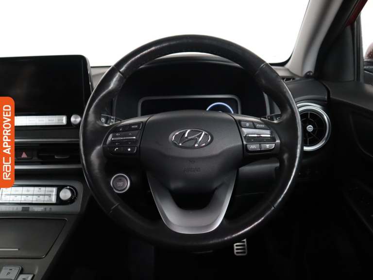 1 Owner From New With Service History Combine Style, Performance, And Cutting-Edge Tech In The Kona, Experience Its Dynamic Features In-Store On A Test Drive. - This Hyundai Kona Is A Fully Electric Vehicle That Can Utilize Ultra Rapid Charge Technology At A Impressive Rate Of 100 Kw By Using A CCS Connector Which Enables You To Charge From 10% To 80% In As Little As 39 Minutes. All This Together Gives A Exceptional Range Of 300 Miles. The Kona Showcases A Strong 201 Horsepower And An Instant Torque Of 395 Newton-Meters From Its Electric Motor. - Finished In £565 Pulse Red Pearl Paint Standout Key Features Include Gps Satellite Navigation System, Boasting Intuitive Sat Nav Functionality For Seamless Journeys, Rear Assist Camera, Front Heated Seats. As You Step Inside Youll Discover An Impressive Array Of Technology, Including Apple CarPlay, Android Auto, Wireless Charging Pad For Compatible SmartPhones, Rain Sensing Windscreen Wipers, Lane Departure Warning System, Radar Guided Adaptive Cruise Control, Dusk Sensing Automatic Headlights. Entertain All Passengers On Board With Features Like Voice Control For Media Functions, Bluetooth Wireless SmartPhone Connectivity. Relax In The Ultimate Comfort Thanks To Keyless Entry, Keyless Start, Air Conditioning, Electrically Foldable Door Mirrors, Ice Melting & De-misting Electric Heated Windscreen, Anti Dazzle Rear View Mirror, Isofix, Front Electric Windows, Rear Privacy Glass, Leather Covered Multifunction Steering Wheel. Also Fi...