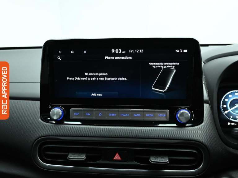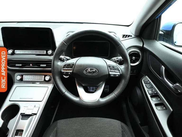 1 Owner From New With Hyundai Dealer Service History Combine Style, Performance, And Cutting-Edge Tech In The Kona, Experience Its Dynamic Features In-Store On A Test Drive. - This Hyundai Kona Is A Fully Electric Vehicle That Can Utilize Ultra Rapid Charge Technology At A Impressive Rate Of 100 Kw By Using A CCS Connector Which Enables You To Charge From 10% To 80% In As Little As 39 Minutes. All This Together Gives A Exceptional Range Of 300 Miles. The Kona Showcases A Strong 201 Horsepower And An Instant Torque Of 395 Newton-Meters From Its Electric Motor. - Finished In £565 Surfy Blue Metallic Paint Standout Key Features Include Gps Satellite Navigation System, Boasting Intuitive Sat Nav Functionality For Seamless Journeys, Rear Assist Camera, Front Heated Seats. As You Step Inside Youll Discover An Impressive Array Of Technology, Including Apple CarPlay, Android Auto, Wireless Charging Pad For Compatible SmartPhones, Rain Sensing Windscreen Wipers, Lane Departure Warning System, Radar Guided Adaptive Cruise Control, Dusk Sensing Automatic Headlights. Entertain All Passengers On Board With Features Like Voice Control For Media Functions, Bluetooth Wireless SmartPhone Connectivity. Relax In The Ultimate Comfort Thanks To Keyless Entry, Keyless Start, Air Conditioning, Electrically Foldable Door Mirrors, Ice Melting & De-misting Electric Heated Windscreen, Anti Dazzle Rear View Mirror, Isofix, Front Electric Windows, Rear Privacy Glass, Leather Covered Multifunction Stee...