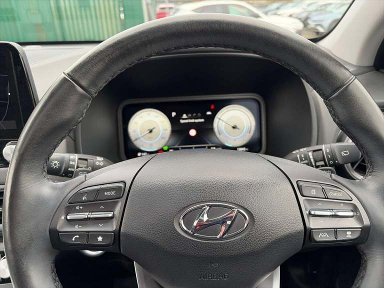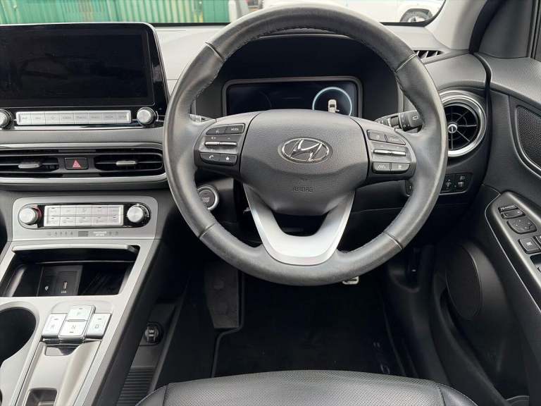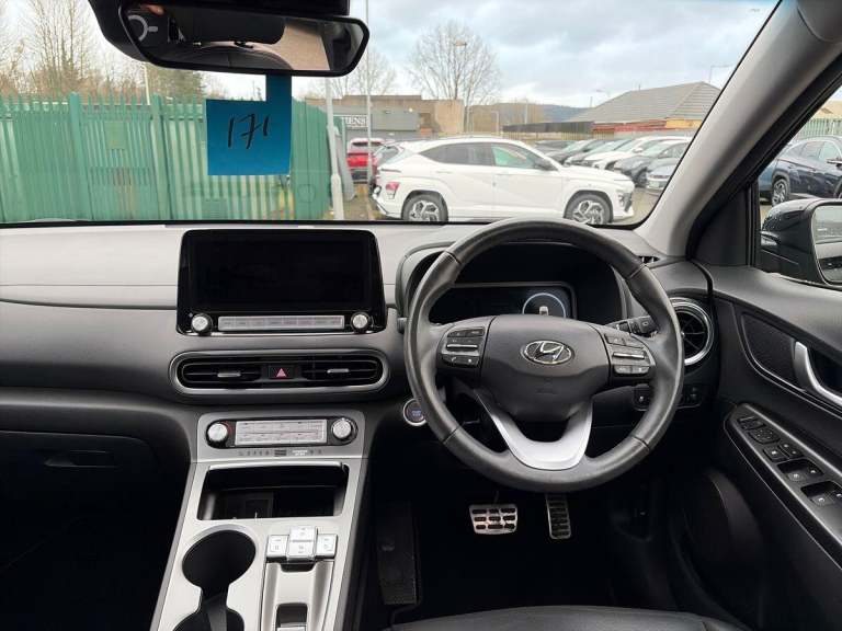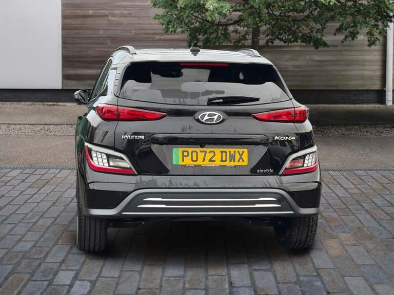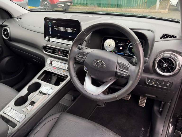 Hello and thank you for taking the time to view our vehicle listing – This is a Hyundai Kona 64kWh Ultimate SUV 5dr Electric Automatic, finished in Phantom Black with the premium Ultimate interior trim.This is the 204PS 64kWh long-range electric model, offering impressive performance combined with outstanding efficiency. With a WLTP range of up to 300 miles, it delivers excellent real-world usability whether for daily commuting or longer motorway journeys. The fully automatic transmission provides smooth, instant acceleration typical of electric vehicles, making it effortless and enjoyable to drive.Equipped with the 10.5kW onboard charger, the Kona can charge from 10–100% in approximately 6 hours on a suitable home wallbox, making overnight charging simple and convenient. When using a rapid DC charger, you can achieve around 10–80% charge in approximately 40–45 minutes, perfect for longer journeys when you need a quick top-up.Being fully electric, it produces zero tailpipe emissions and offers significantly reduced running costs compared to petrol or diesel vehicles — with potential savings on fuel, road tax and maintenance.Registered PO72 DWX (72 Plate – 2022) and having covered just 13,855 miles, this vehicle is presented in superb condition and represents fantastic value for a high-specification Ultimate model.As the range-topping Ultimate specification, this Kona comes exceptionally well equipped, including large touchscreen infotainment system with satellite navigation, digital driver display, heated and ventilated front seats, heated steering wheel, electric adjustable driver’s seat, rear parking camera, front and rear parking sensors, Blind Spot Collision Avoidance Assist, Lane Keep Assist, adaptive cruise control, automatic LED headlights, keyless entry with engine start button, wireless phone charging, Apple CarPlay & Android Auto, premium interior trim, alloy wheels – plus much much more.The Hyundai Kona Electric continues to be one of the most popular compact electric SUVs on the market, offering bold styling, excellent practicality and genu