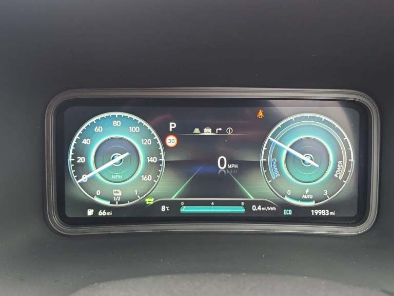 This 2022 Hyundai KONA Premium Electric boasts exceptionally low mileage for its age, having covered just 19982 miles. As a Premium trim model, this electric vehicle offers a generous 68 kWh battery, providing a maximum range of 300 miles when new. Charging is convenient, with a full charge at home using a 7kW charger taking approximately 10 hours and 16 minutes, while rapid public charging can take the battery from empty to 80% in as little as 53 minutes.The impressive 300 mile range highlights how this KONA Premium is designed to go further between charges compared to many other electric vehicles. This makes it a practical choice for both daily commutes and longer journeys. The combination of its efficient electric powertrain, substantial battery capacity, and low mileage makes this 2022 Hyundai KONA Premium a compelling option for those seeking a modern and capable electric car.
