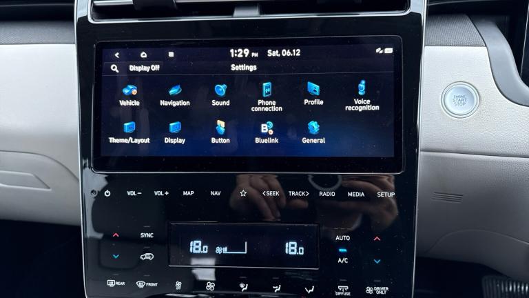 10.25in Touchscreen Satellite Navigation - Mapcare - LIVE Services12V Power Outlet - Front Centre Facia and Luggage CompartmentBlueLinkBluetooth ConnectivityDAB Digital RadioE-CallKrell Premium Audio - 8 Speakers and SubwooferPhone Connection - Android AutoPhone Connection - Apple CarPlayWireless Phone Charging PadBlind Spot Collision Avoidance AssistCruise Control - Smart Adaptive Speed Control with Stop and Go FunctionDrive Mode SelectDriver Attention WarningForward Collision-Avoidance Assist - FCA with Car - Pedestrian and CycleForward Collision-Avoidance Assist - Junction TurningParking Sensors - Front and RearParking System - Rear CameraTyre Pressure Monitoring System with Individual Tyre Pressure Display19in Alloy WheelsBody Colour BumpersChrome Effect Bumper MouldingDoor Mirrors - Electric Adjustment and Heated with Power Folding FunctionDoor Mirrors with Integrated Indicators - Body ColouredElectric Windows - Front and Rear with Anti-Trap Mechanism and One Touch ControlExterior Door Handles - Body ColouredLocking Wheel NutsPanoramic Sunroof - Glass - Electric Tilt and SlidePrivacy Glass - Rear Windows and TailgateRadiator Grille - Dark ChromeRoof RailsSatin Chrome Effect Door Frame MouldingSkid Plates - Front and Rear - SilverTinted Glass with Windscreen Shade BandTyre Repair KitDaytime Running Lights - LEDHeadlights - Automatic with Dusk SensorHigh Beam AssistRear Lights - LEDAdjustable Head RestraintsAdjustable Intermittent Front Windscreen Wipers with Aero Wiper BladeArmrest - Front with StorageArmrest - Rear with Cup HoldersAutomatic Dimming Rear View MirrorAutomatic Windscreen Wipers with Rain SensorClimate Control - Three ZoneDrivers Seat Lumbar Support - ElectricFront Ventilated SeatsHeated Front SeatsHeated Steering WheelInterior Light - Ambient LightingInterior Light - Luggage CompartmentInterior Personal LED Light and Overhead Console LampLane Follow Assist - LFALuggage CoverRear Seat - Remote Folding FunctionRear Seats Outer - HeatedRear Side Window BlindSeat Back Panel with Pocket - Driver and PassengerSeats - 40-20-40 Split Folding RearSmart Electric TailgateSteering Wheel Audio and Phone ControlsSun Visors with Driver and Passenger Illuminated LED Vanity MirrorsSupervision Instrument Cluster - 10.25inHeadlights - LED - MFR with Static Bending LightPositioning Lights LEDSeats - Drivers Electric Height Adjustment with Memory FunctionSeats - Passenger Electric Height