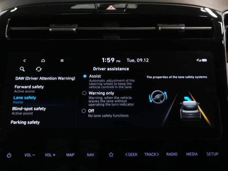 Experience the impressive Hyundai Tucson Hybrid, where luxury meets innovation. Enjoy panoramic roof views, an advanced sunroof, and effortless journeys with adaptive cruise control. Inside, relax with heated and cooled leather seats, a heated steering wheel, and keyless entry. Stay seamlessly connected via Apple CarPlay and navigate with ease using the built-in sat nav. For added safety and convenience, benefit from active lane assist, a reversing camera, and brilliant LED headlights. Drive with comfort and confidence wherever you go. 2 services recorded, last serviced on 25/09/2025 at 77,952 miles. MOT to 11/11/2026. Visit our website for service history, online valuation, full vehicle specification plus multiple images. This vehicle is VAT qualifying. Any feature/option specified here is from 3rd party data. We cannot guarantee the accuracy of any specification supplied by a 3rd party. We recommend that you physically check the specification of the vehicle on site prior to purchase. This information does not form part of the buying contract. Terms & Conditions apply. We have over 2,000 cars available from our 10 national branches, check our website to see all our stock. Our Trustpilot rating is 4.4/5 with over 9,000 reviews.