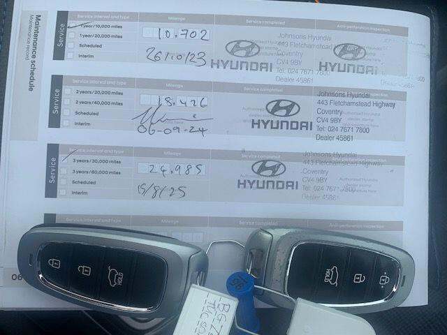 This 2022 Hyundai TUCSON h T-GDi Ultimate is a Hyundai manufacturer approved vehicle with a full dealership service history, most recently serviced on 2025-08-19 at 24985 miles, and benefits from 23 months of warranty remaining. This Euro 6 compliant, Four Wheel Drive, 1.6L Petrol Plug-in Hybrid boasts the top of the range Ultimate trim, offering a premium driving experience. Inside, you'll find a Wireless Phone Charging Pad, a Heated Steering Wheel, and Heated Front Seats for ultimate comfort. For convenience and safety, it features Smart Adaptive Cruise Control with Stop and Go functionality and Blind Spot Collision Avoidance Assist.The TUCSON Ultimate is designed for practicality and ease of use, offering generous boot space for all your needs. Its low insurance group rating indicates that running costs are kept to a minimum, making it an economical choice. A 12 month MOT will be provided on purchase, ensuring peace of mind for the road ahead. This combination of advanced features, excellent provenance, and practical benefits positions this Hyundai TUCSON as a superior option compared to similar vehicles.