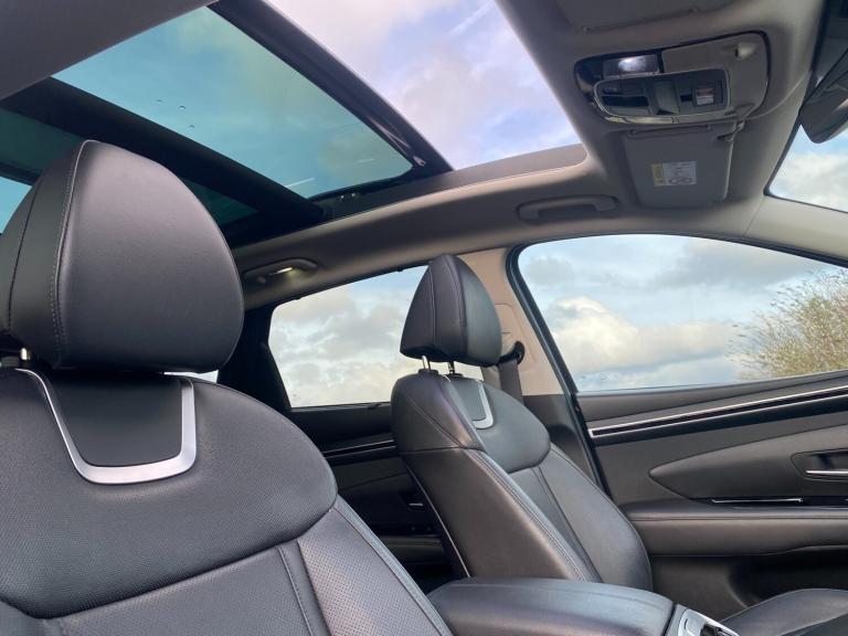 Crossroads Garage are delighted to offer another superb used vehicle; this sensational Hyundai Tucson MHEV Ultimate Auto which has just arrived in stock with us. COLOUR & TRIM - Our wonderful example is presented in the highly desirable colour Teal Blue Hyundai metallic paintwork and rides on 19"" alloy wheels. The interior is finished in complimentary Black full leather upholstery on heated & cooled, electric memory front seats. SOURCE - This beautiful Tucson was purchased by us directly from it's previous keeper. SERVICING - Our fantastic example has covered just 37000 miles and is provided with a Full Service History, including a recent service. It is of-course HPI clear and the mileage has been verified with VOSA records. CONDITION - This Hyundai has been well cared-for and is in excellent condition. Having been put through our multi-point check this car will be supplied with the balance of manufacturer's warranty until January 2027. SPECIFICATION - Our premium SUV has a fantastic list of upgraded features which includes, 7-Speed Automatic Gearbox, Virtual Cockpit, 10.25 Inch Centre Console Display, Apple CarPlay, Android Auto, Satellite Navigation, Panoramic Glass Sunroof, Heated & Cooled Front Seats, Electric Memory Seats, Heated Steering Wheel, Heated Rear Seats, Rear View Camera, Front & Rear Parking Sensors With Optical Display, Wireless Phone Charging Pad, Krell Premium Audio System, Power Tailgate, Blind Spot Warning, Lane Follow Assist, Drive Mode Select, LED Headlights, High Beam Assist, Adaptive Cruise Control, Dual-Zone Climate Control, Multi-Function Steering Wheel, Bluetooth Audio & Handsfree, Front Centre Armrest, DAB Radio, Electric Folding Door Mirrors, and more besides. WHAT TO EXPECT FROM US - Fabulous finance packages and the comfort of knowing your car is being supplied by a multi award-winning dealer. All of our vehicles are prepared to a high standard by our team of skilled technicians and will be valeted ready for collection. We take pride in our efforts to make this the most enjoyable car-buying experience you'll ever have. Please call and speak to James, Alan, Dean or Simon who'll be able to answer any questions you have, to reserve this wonderful example today or to book a viewing. Please remember to bring a valid Full Driving Licence with you. Thank You.