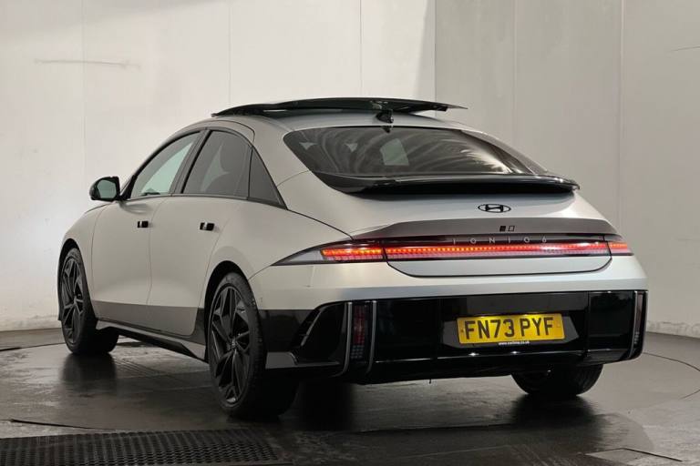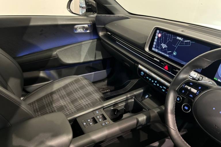 This 2023 Hyundai IONIQ 6 First Edition boasts exceptionally low mileage for its age, having covered just 10,657 miles, and has been cared for by a single owner. This all electric, four wheel drive model features a substantial 77 kWh battery, offering a maximum range of 322 miles when new. Charging is convenient, with a full charge at home taking approximately 11 hours and 45 minutes using a 7kW charger, while rapid public charging can replenish the battery from empty to 80% in as little as 20 minutes. The vehicles MOT is valid until September 2026, and its history is clear, providing peace of mind. The First Edition trim level comes equipped with a suite of advanced features designed to enhance your driving experience. These include a Blind Spot View Monitor with Blind Spot Assistance, dual zone climate control for personalised comfort, and LED headlights with high beam assist for improved visibility. Parking is made easier with forward and reverse parking distance warnings, and both front and rear seats are heated for added comfort during colder journeys. These notable features, combined with the vehicles impressive electric range and rapid charging capabilities, position this IONIQ 6 as a superior choice for those seeking a sophisticated and efficient electric car. Lifetime warranty available on this car, plus a £1,000 finance contribution when you part exchange. Voted UK Car Supermarket of the Year two years running, we offer 0% finance, part exchange, and lifetime warranties across our entire range. Every car is thoroughly inspected before sale and comes with a full history check, so you can buy with complete peace of mind. Buy with confidence on our best finance rates. Proud winners of the CarGurus Top-Rated Dealer 2022 and the MotoNovo Extra Mile Award. .10.5 kWh 3 Phase On Board Charger - OBC, 12.3in Touchscreen Satellite Navigation and Media Centre, 12V Power Outlet, 20in Alloy Wheels, ABS - Anti-Lock Brake System, Active Sound Design - ASD, Air Conditioning - Climate Control - Dual Zone, Airbags - Driver, Airbags - Front Thorax - Pelvis and Curtain Airbags, Automatic Windscreen Wipers with Rain Sensing, Black Package, Blind Spot Collision Avoidance Assist - BCA, Blind Spot View Monitor, Bluelink - Connected Car Services and Live Services (3 Year Subscription From New), Bluetooth Connectivity with Voice Recognition, BOSE Premium Sound System, Bumper Mouldings - High Glossy Black, Central Locking - Remote Control, Charging Cable - 7 Pin Type 2, Childproof Rear Door Locks - Manual, Cup Holders - Front and Rear, Daytime Running Lights - LED, Door Mirrors - Electric Adjustment and Heated with Power Folding Function, Door Mirrors - Glossy Black, Door Scuff - Deluxe Plate, Drive Mode Select - Eco - Normal - Sport, Drivers Seat Electric Adjustment and Lumbar Support, Drivers Seat with Memory Function, Drivers Supervision Instrument Cluster with Full TFT Display - 12.3in, E-Call, ECM - Electrochromatic Mirror, Electric Parking Brake with Auto Hold Function, Electric Power Steering, Electric Windows - Front and Rear, Electronic Stability Control - ESC, First Edition - Floor Mats, Flush Handle - Auto, Fog Lights - LED Rear, Forward Collision-Avoidance Assist - FCA with Car - Pedestrian and Cycle, Forward Collision-Avoidance Assist - Junction Turning, Front Passengers Seat with Electric Adjustment and Lumbar Support, Front Seat Back Pockets - Driver and Passenger Seat, Front Seats - Premium Relaxation Seats - Driver and Passenger, Frunk - Under Bonnet Storage, Gravity Gold, HAC - Hill-Start Assist Control, Head-Up Display - TFT-LCD Type, Heat Pump, Heated Rear Windscreen, Heated Seats - Front and Rear, Heated Steering Wheel, Highway Drive Assist - Level 2, Immobiliser, Intelligent Speed Limit Assist - ISLA, Interior Light - Ambient Lighting, Lane Follow Assist - LFA, Lane Keep Assist - LKA - Line and Road Edge, Leather Encased Seats with Cloth Interior - Tartan Fabric Design, Leather Wrapped Steering Wheel, LED Headlights with High Beam Assist, Metal Pedals, Openable Sunroof, Parking Distance Warning - PDW - Forward-Reverse, Parking System - Surround View Monitor, PCA - Parking Collision Avoidance Assist - Reverse-Forward, Phone Connection - Android Auto, Phone Connection - Apple CarPlay, Positioning Lights LED, Pr
