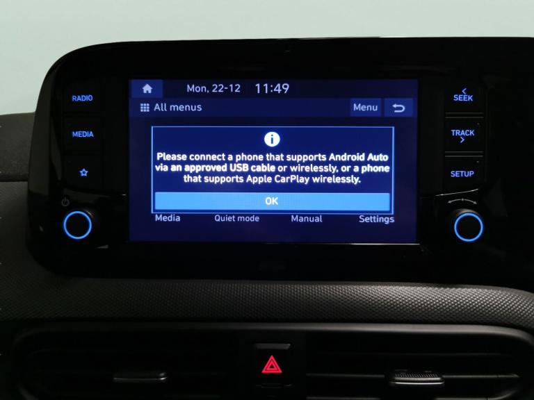 Discover the stylish black Hyundai i10, a compact hatchback packed with impressive features. Enjoy seamless connectivity with Apple CarPlay, plus the convenience of a reversing camera and lane departure warning system for extra peace of mind. Cruise control and Bluetooth add to a relaxed and enjoyable drive, while smart 15in alloy wheels complete the look. Stay comfortable no matter the weather with air conditioning. This i10 is the perfect blend of practicality and modern tech. 3 services recorded, last serviced on 24/11/2025 at 21,550 miles. MOT to 25/12/2026. Visit our website for service history, online valuation, full vehicle specification plus multiple images. This vehicle is VAT qualifying. Any feature/option specified here is from 3rd party data. We cannot guarantee the accuracy of any specification supplied by a 3rd party. We recommend that you physically check the specification of the vehicle on site prior to purchase. This information does not form part of the buying contract. Terms & Conditions apply. We have over 2,000 cars available from our 10 national branches, check our website to see all our stock. Our Trustpilot rating is 4.4/5 with over 9,000 reviews.