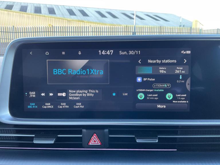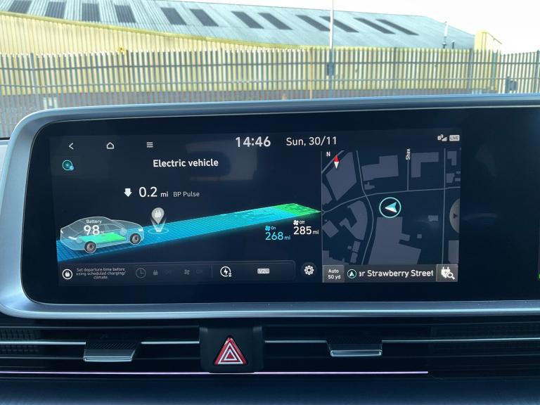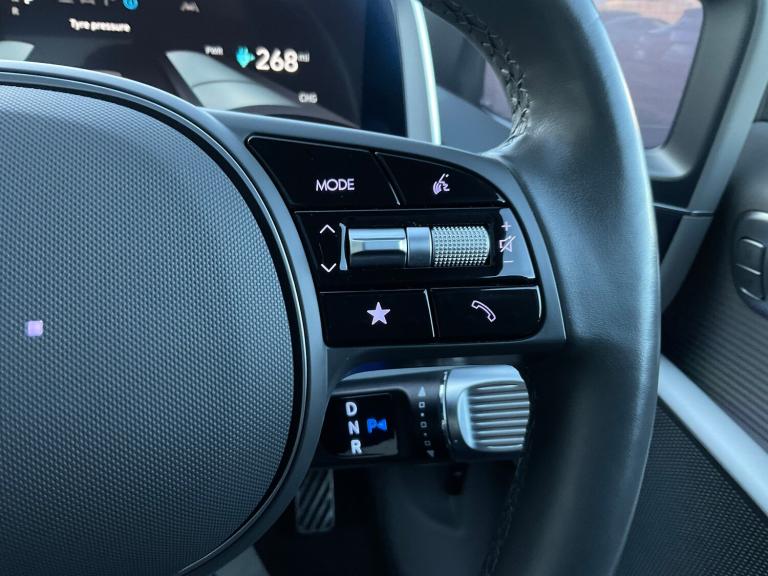 This 2023 Hyundai IONIQ 6 Ultimate boasts a substantial 77 kWh battery, providing an impressive maximum range of 338 miles when new. Charging at home with a 7kW charger will take approximately 11 hours and 45 minutes for a full charge, while rapid public charging can take you from empty to 80% in a swift 20 minutes. The IONIQ 6 Ultimate is designed for efficiency and convenience. Its electric powertrain ensures a smooth and quiet driving experience, perfect for both city commutes and longer journeys. The generous battery capacity and extensive range mean fewer stops and more time enjoying the drive. This vehicle represents a smart choice for those seeking advanced electric technology and a premium driving experience.