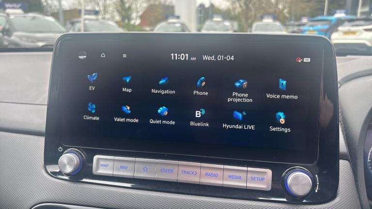 This 2023 Hyundai KONA Premium Electric is a superb example, having had only one owner since new. This stylish electric SUV offers a battery total capacity of 42 kWh, providing a maximum range of 189 miles when fully charged. For convenient home charging, a full charge using a 7kW unit takes approximately 6 hours and 40 minutes, while rapid public charging can replenish the battery from empty to 80% in just 54 minutes. Inside, you'll find a host of useful features, including seamless phone connectivity with both Android Auto and Apple CarPlay, Bluetooth with voice recognition, and comforting heated front seats.The KONA Premium Electric stands out with its advanced safety features, such as Blind Spot Collision Avoidance Assist, offering enhanced peace of mind on every journey. These integrated technologies and impressive charging capabilities demonstrate how this Hyundai KONA provides a superior driving experience compared to other vehicles in its class, making it an excellent choice for those seeking an efficient and well equipped electric car..Satellite Navigation, 10.5 kWh 3 Phase On Board Charger, Electric front/rear windows with drivers one touch/anti-trap, Solar glass with windscreen shade band, Automatic windscreen wipers with rain sensor, Privacy glass - Rear windows and tailgate, Rear wiper, Variable front intermittent wipers, Electronic stability control, EBD + Brake Assist, Hill start assist control (HAC), Electric parking brake, Anti-lock brake system (ABS), Regenerative brake shift paddles, Vehicle Stability Control (VSC), Bluetooth connectivity with voice recognition, Wireless phone charging pad, Roadside assistance, PAS, Rear parking sensor, Lane keep assist, Front parking sensor, Drive Mode Selector, Parking system with rear camera and guidance system, Intelligent speed limit warning, Lane follow assist, Cruise control - smart adaptive speed control with stop and go function, Blind spot collision avoidance assist, Forward collision assist with pedestrian monitoring and cycle detection