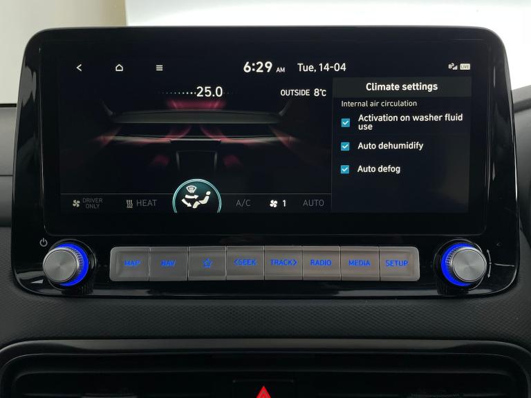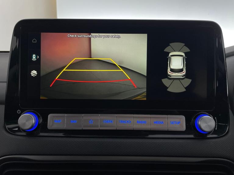 Discover the Hyundai Kona Electric a stylish grey SUV packed with premium features for comfort and confidence. Enjoy heated seats and a heated steering wheel for those chilly mornings. Stay connected with Apple CarPlay and Bluetooth audio streaming, while the advanced sat nav helps you find your way. Experience effortless driving with adaptive cruise control, keyless entry, and driving modes. Safety is enhanced with blind spot assist, lane departure warning, and a reversing camera. LED headlights add both sophistication and clarity to every journey. 1 service recorded, last serviced on 11/04/2026 at 41,847 miles. MOT to 26/03/2027. Visit our website for service history, online valuation, full vehicle specification plus multiple images. This vehicle is VAT qualifying. Any feature/option specified here is from 3rd party data. We cannot guarantee the accuracy of any specification supplied by a 3rd party. We recommend that you physically check the specification of the vehicle on site prior to purchase. This information does not form part of the buying contract. Terms & Conditions apply. We have over 2,000 cars available from our 10 national branches, check our website to see all our stock. Our Trustpilot rating is 4.4/5 with over 9,000 reviews.