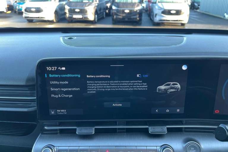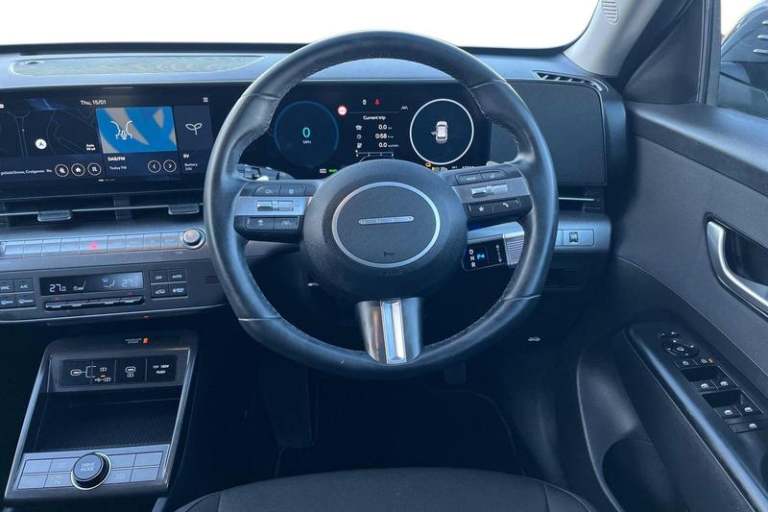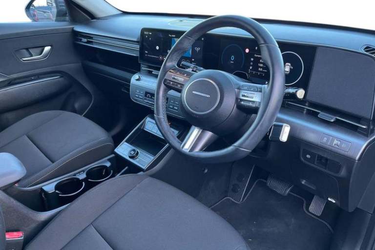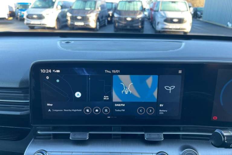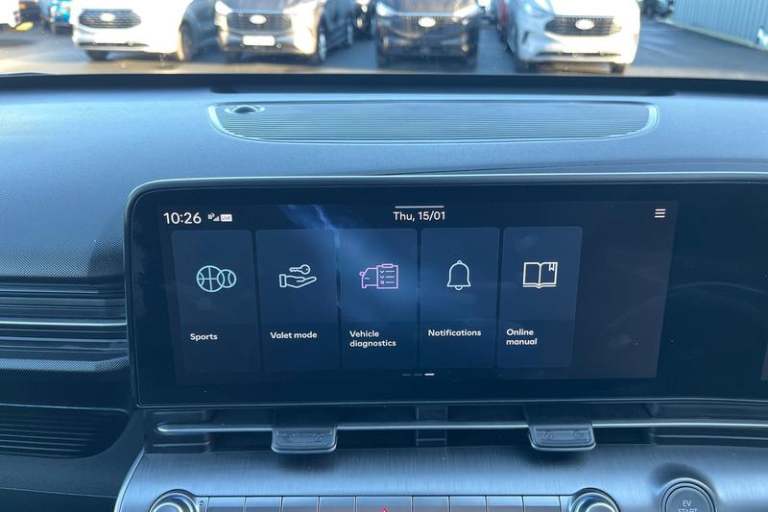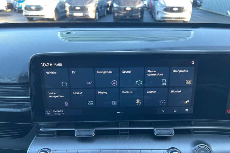 12.3 touchscreen centre console display satellite navigation with bluelink, live services and mapcare, Bluetooth connectivity with voice recognition, Driver status monitor (DSM), Driver supervision instrument cluster with 12.3 LCD display, eCall emergency call system, Feature on demand - Enabled, Forward collision avoidance assist (FCA 1.5) - Car, pededstrian, cycle and junction turning, Front parking sensor, HDA - Highway Drive Assist Level 1.5, Intelligent speed limit assist, Lane follow assist, Lane keep assist, Leading vehicle departure alert (LVDA), Parking system with rear camera and guidance system, PAS, Rear parking sensor, Roadside assistance, Smart cruise control with stop and go functionality, Wireless Smartphone Integration includes Apple CarPlay and Android auto, Acoustic film + solar windscreen, Auto dimming rear view mirror, Automatic headlights with dusk sensor, Automatic windscreen wipers with rain sensor, Body colour exterior door handles, Body coloured door mirrors, Body coloured wheel arch inserts, Door mirror LED indicator lights, Electric front windows with anti-trap mechanism and one touch control, Electric rear windows, Electrically adjustable and heated door mirrors, Frunk - under the bonnet storage, Full LED MFR headlights, LED daytime running lights, LED upper and lower rear lights, Power folding door mirrors, Rear roof spoiler with integrated LED brake light, Rear side wing doors, Rear wiper, Roof rails, Satin finished beltline, Tinted glass in