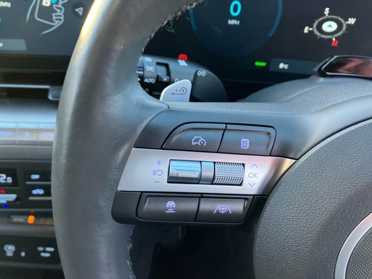 This 2023 Hyundai KONA Ultimate Electric boasts a Hyundai car warranty until 2028 and a battery warranty until 2031, offering you peace of mind for years to come. This impressive electric vehicle features a substantial 73 kWh battery, providing a maximum range of 282 miles when new. Charging is convenient, with a full charge at home using a 7kW charger taking approximately 8 hours and 53 minutes, and a rapid charge from empty to 80% achievable in just 46 minutes at a public charging station. Experience a refined drive with the KONA Ultimates notable features. Stay connected and in control with Bluetooth Connectivity with Voice Recognition, and enjoy added comfort thanks to the Heated Steering Wheel. Safety is enhanced with the Blind Spot View Monitor, while the Wireless Phone Charging Pad keeps your devices powered up effortlessly. Automatic Headlights with Dusk Sensor ensure optimal visibility in varying light conditions, making this Hyundai KONA Ultimate a well equipped and practical choice.