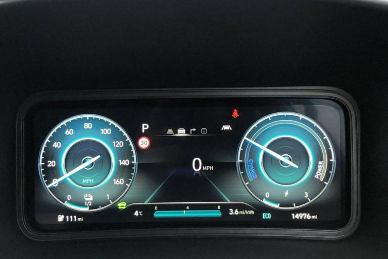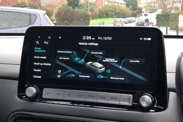 .Parking Sensors - Front and Rear, Heated Front Seats, Heated Rear Seats, Electric Tilt and Slide Glass Sunroof, Blind Spot Collision Avoidance Assist, Leather - Black, 10.25in Widescreen Navigation with Bluelink and Mapcare, 100 Percent MapCare Programme - 10 Years of Map Updates, 17in Alloy Wheels, ABS - Anti-Lock Brake System, Adjustable Head Restraints, Airbags - Front - Front Side and Curtain Airbags, Automatic Dimming Rear View Mirror, Automatic Headlights with Dusk Sensor, Automatic Windscreen Wipers with Rain Sensor, Battery Heater, Blind Spot Collision Avoidance Assist, Bluetooth Connectivity with Voice Recognition, CCS Combo Rapid Charge Port - 50kW, Central Locking - Remote Control, Charging Cable - 7 Pin Type 2, Charging Cable - Emergency 3 Pin Connector - ICCB, Climate Control with Automatic De-Fog System for Front Windscreen, Cruise Control - Smart Adaptive Speed Control with Stop and Go Function, Cup Holders - Front, Daytime Running Lights - LED, Digital Clock, Door Mirrors - Body Coloured, Door Mirrors - Electric Heated and Folding, Drive Mode Selector, Drivers Seat Electric Adjustments, Drivers Seat Height Adjustment - Electric, Drivers Supervision Instrument Cluster with Full TFT Display - 10.25in, Electric Tilt and Slide Glass Sunroof, Electric Windows - Anti-Trap Mechanism - Driver, Electric Windows - Front and Rear, Electric Windows - One Touch Controls - Driver, Electronic Stability Control - ESC, Exterior Door Handles - Body Coloured, Forward Collision Avoidance Assist with Pedestrian and Cycle Detection - FCA, Forward Collision Warning System, Front Passengers Seat Electric Adjustments, Front Passengers Seat Height Adjustment - Electric, Front Seat Back Pockets - Driver and Passenger Seat, Front Ventilated Seats, HAC - Hill-Start Assist Control, Head Up Display - HUD, Headlights - Full LED, Heated Front Seats, Heated Rear Seats, Heated Steering Wheel, High Beam Assist, Highway Drive Assist, Immobiliser, Indicator Lights - Door Mirror, Intelligent Speed Limit Warning - ISLW, Interior Door Handles - Chrome Effect, Interior Light - Ambient Lighting, Interior Light - Centre, Interior Light - Front, Krell Premium Audio - 8 Speakers and Subwoofer, Lane Follow Assist - LFA, Lane Keep Assist - LKA, Leather Wrapped Steering Wheel, Motor Driven Power Steering - MDPS, Parking Brake - Electric, Parking Sensors - Front and Rear, Parking System - Rear Camera and Guidance System, Phone Connection - Android Auto, Phone Connection - Apple CarPlay, Po