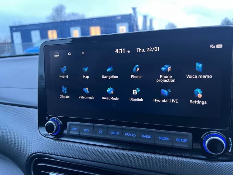 .ONE PRIVATE OWNER FULL HYUNDAI DEALER SERVICE HISTORY 2 YEAR WARRANTY REMAINING HIGH SPECIFICATION MODEL.10.25'' touchscreen centre console display satellite navigation with live services and mapcare, Bluetooth connectivity, Digital clock, Driver attention warning, Driver supervision instrument cluster with 10.25'' LCD display, eCall emergency call system, Forward collision assist with pedestrian monitoring and cycle detection, Front parking sensor, Intelligent speed limit warning, Lane follow assist, Lane keep assist, Leading vehicle departure alert (LVDA), Parking system with rear camera and guidance system, PAS, Phone connection with apple carPlay and android auto, Rear parking sensor, Roadside assistance, Smart cruise control with stop and go functionality, Windscreen washer fluid sensor and warning indicator, Wireless phone charging pad, 6 speed dual clutch transmission, Front and rear USB ports, Krell premium audio system with 8 speakers including external amplifier and subwoofer, RDS and Digital DAB, Steering wheel mounted audio/phone controls, Auto dimming rear view mirror, Automatic headlights with dusk sensor, Automatic windscreen wipers with rain sensor, Body colour door mirrors and handles, Door mirror integrated indicators, Electric front/rear windows with drivers one touch/anti-trap, Electrically adjustable and heated door mirrors, Front fog lights, Halogen headlights, LED daytime running lights, LED rear lights, Painted anthracite body garnish, Positioning Lights - LED, Power folding door mirrors, Privacy glass - Rear windows and tailgate, Rear roof spoiler with integrated LED brake light, Rear side wing doors, Rear skid plate - silver, Rear wiper, Roof rails, Solar glass with front door glass and windscreen shade band, Variable front intermittent wipers, Windscreen auto defog function, 12V power outlet in front console, 3 seat bench in 2nd row, 60/40 split folding rear seat, Adjustable head restraints, Air conditioning climate control, Ambient lighting, Centre interior light, Cloth upholstery, Door scuff plate, Driver and passenger front seat pockets, Driver's seat electric lumbar support, Driver's seat height adjustment, Driver/passenger sunvisors and illuminated vanity mirrors, Front interior light, Front passenger seat manual adjustments, Heated front seats, Heated steering wheel, Height/reach adjustable steering column, Isofix rear child seat fastenings, Leather wrapped steering wheel and gear knob, Luggage compartment lighting,
