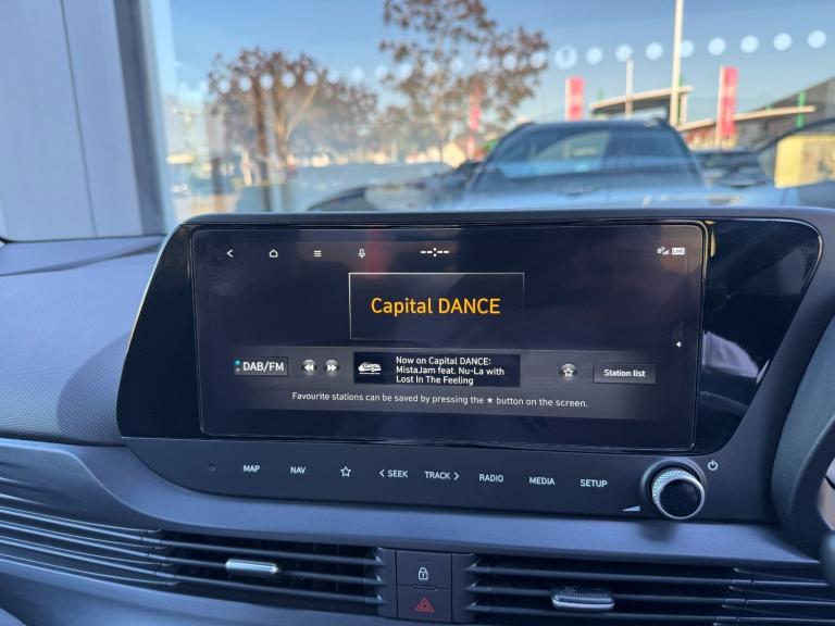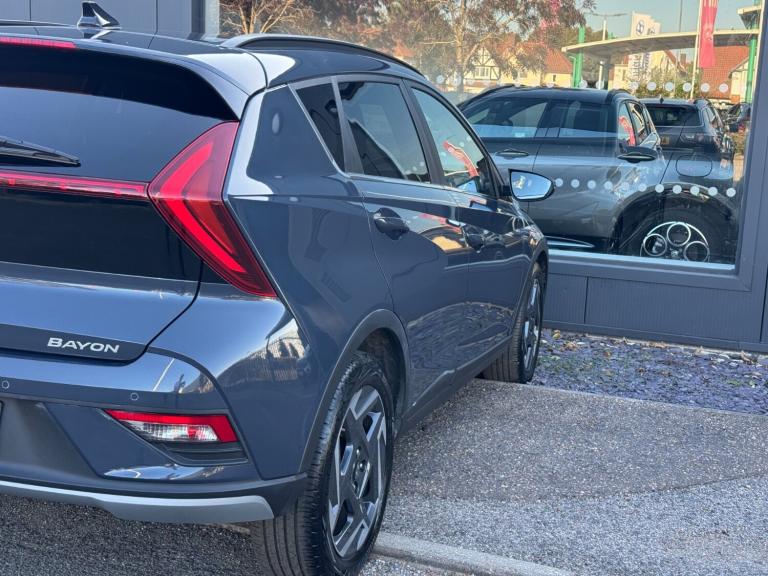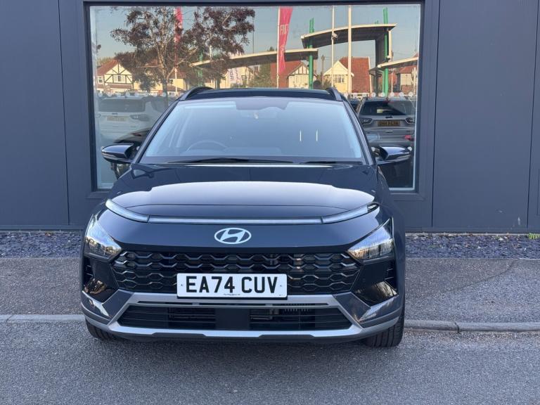 Hyundai Bayon 1.0 TGDi Premium 5dr.SAT NAV*REAR CAMERA.10.25'' Digital instrument cluster display screen, 10.25'' touchscreen + navigation, Apple car play/Android Auto, Cruise control + speed limiter, eCall emergency call system, Forward Collision Avoidance Assist (FCA) - Car, Pedestrian and Cycle, Front parking sensors, Lane follow assist, Lane keep assist, MAP OTA updates, PAS, Rear parking sensors and rear view camera, Speed sign recognition, Front USB Type-C connector, USB C Port in rear, Auto dimming rear view mirror, Automatic wipers, Dusk sensor, Electric adjustable/heated/folding door mirrors, Electric adjustment and heated door mirrors, Electric front/rear windows with drivers one touch/anti-trap, High beam assist, LED 3rd brake light, LED daytime running lights, LED Headlights with Front LED Lightbar, LED taillights, Privacy glass - Rear windows and tailgate, Rain sensor, Rear side wing doors, Rear wiper, Roof rails, 3 seat rear bench, Adjustable head restraints, Automatic air conditioning, Cloth seat trim, Floor mats, Front armrest, Heated front seats, Heated steering wheel, Illuminated driver/passenger vanity mirror, Interior LED lighting, Leather steering wheel and gear knob, Multi colour ambient lighting, Single front passenger seat, 3 point front seatbelts with pre-tensioners, 3 point rear seatbelts, Airbags - front, front side and curtain airbags, Anti-lock braking system (ABS), Autonomous emergency braking, Electronic Stability Programme (ESP), Front and rear seatbelt reminder, Front passenger airbag deactivation switch, Manual rear child locks, Tyre pressure monitoring system, Immobiliser, Remote control central locking, 17'' Alloy wheels, Tyre repair kit