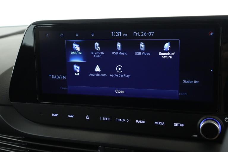 ..10.25'' digital supervision cluster, 2nd Gen eCall, 8'' Touchscreen with DAB, Apple car play/Android Auto, Cruise control + speed limiter, Forward collision assist with car, pedestrian and cycle detection, Intelligent speed limit warning, Lane follow assist, Lane keep assist, PAS, Rear parking sensor, Rear view camera with dynamic guidelines, USB C port front, 3rd brake light, Dusk sensor, Electric adjustable heated door mirrors, Front grille mesh pattern design, High beam assist, LED daytime running lights, LED Headlights, LED taillights, Rain sensor, Rear side wing doors, Rear wiper, Repositioned flat metal hyundai emblem, 3 seat bench in 2nd row, Adjustable head restraints, Air conditioning, Cloth upholstery, Floor mats, Leather steering wheel, Single front passenger seat, 3x3 point rear seatbelts, ABS with front and rear diagonally split, Autonomous emergency braking, Child locks on rear doors, Front ventilated disc brakes, Rear solid disc brakes, Tyre pressure monitoring system, 16'' alloy wheels, Tyre repair kit
