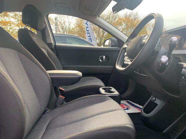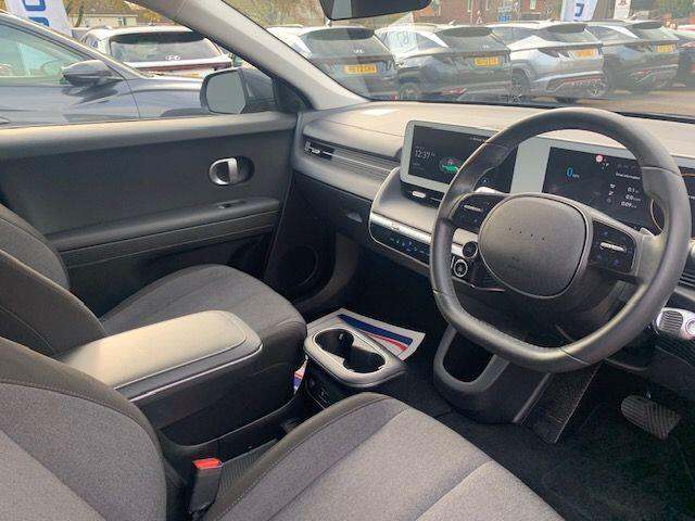 This 2024 Hyundai IONIQ 5 SE Connect is a Hyundai manufacturer approved electric vehicle, boasting a full dealership service history and a 39 month warranty for your peace of mind. This SE Connect model features a 58 kWh battery, offering a maximum range of 238 miles when new. For convenience, it can be fully charged at home using a 7kW charger in approximately 8 hours and 11 minutes, while rapid public charging can take it from empty to 80% in as little as 17 minutes. A 12 month MOT will be provided on purchase, ensuring its roadworthiness.The IONIQ 5 SE Connect stands out with its generous boot space, providing ample room for your luggage or shopping. Inside, you'll find modern technology designed to enhance your driving experience, including Bluetooth connectivity with voice recognition and a handy wireless phone charging pad. These features, combined with its impressive electric range and rapid charging capabilities, position this IONIQ 5 as a superior choice for those seeking an efficient and well equipped electric car.
