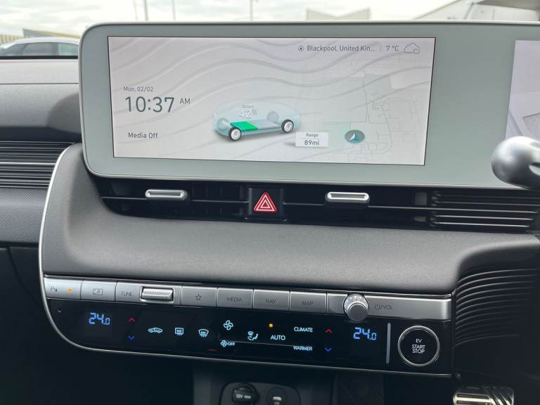 This 2024 Hyundai IONIQ 5 Ultimate is a standout electric vehicle with exceptionally low mileage for its age. As a Hyundai manufacturer approved model, it offers peace of mind alongside its impressive electric performance. This Ultimate trim boasts a substantial 77 kWh battery, providing a maximum range of 295 miles when new. Comfort is a priority, with heated front and outer rear seats, as well as a heated steering wheel. For enhanced safety and awareness, it includes a Blind Spot View Monitor and seamless phone connectivity with Android Auto. The IONIQ 5 Ultimate is designed for both efficiency and enjoyment. Its electric powertrain delivers brisk acceleration, reaching 0-62mph in just 7.3 seconds, a performance that sets it apart from many other vehicles in its class. Above are only a few of our favourite features, but we know youll find your own when you get hands-on in branch. Why buy from us Heres our 5 point promise to you: · HPI history check · A minimum 3-month warranty · A thorough multi-point inspection · Full showroom valet before delivery · Tyres, brakes and service to schedule You can also take advantage of our Chorley Care service that allows you to purchase additional warranty for total peace of mind. If youve got a part exchange, wed love to take it off your hands. Well do a professional appraisal and give you the best price guaranteed. You can also see how much your car could be worth via a free valuation tool on our website. Once youre happy...