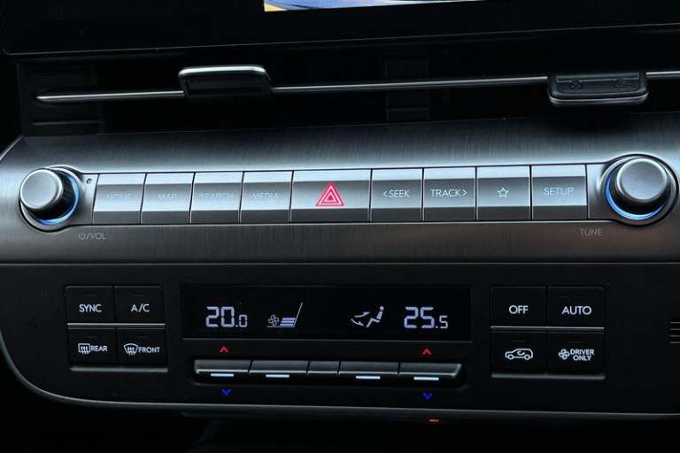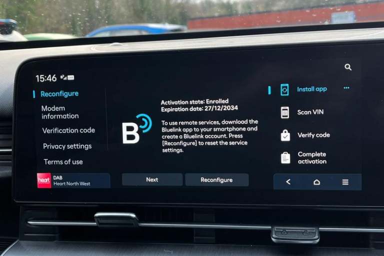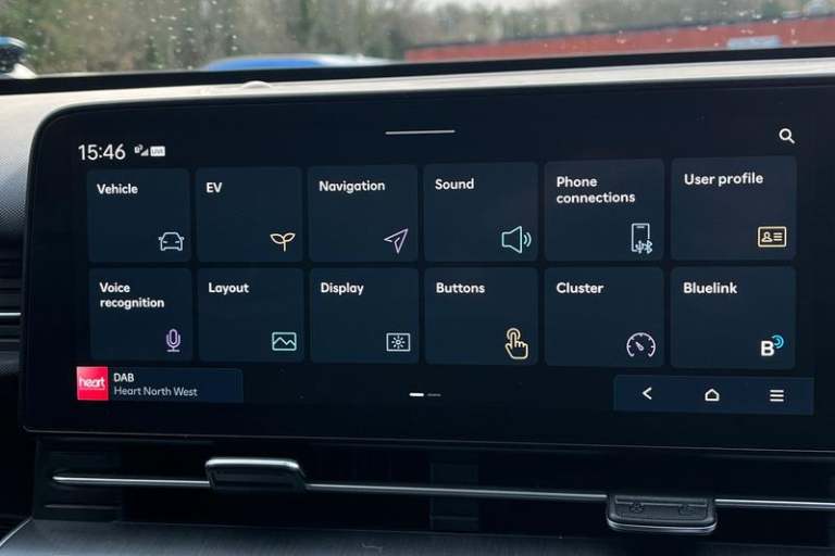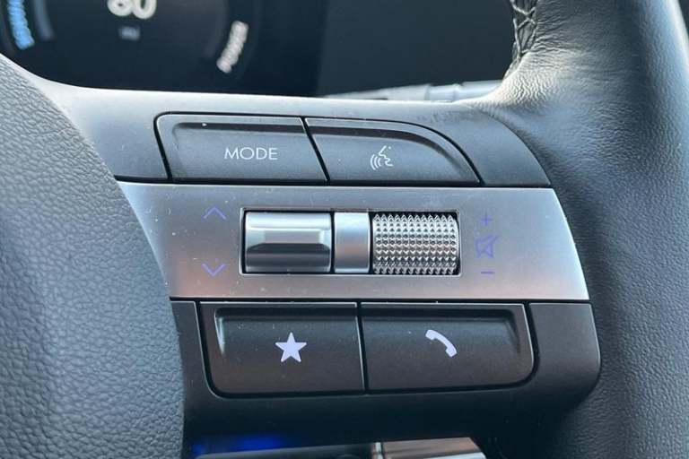 12.3 touchscreen centre console display satellite navigation with bluelink, live services and mapcare, Bluetooth connectivity with voice recognition, Driver status monitor (DSM), Driver supervision instrument cluster with 12.3 LCD display, eCall emergency call system, Feature on demand - Enabled, Forward collision avoidance assist (FCA 1.5) - Car, pededstrian, cycle and junction turning, Front parking sensor, HDA - Highway Drive Assist Level 1.5, Intelligent speed limit assist, Lane follow assist, Lane keep assist, Leading vehicle departure alert (LVDA), Parking system with rear camera and guidance system, PAS, Rear parking sensor, Roadside assistance, Smart cruise control with stop and go functionality, Wireless Smartphone Integration includes Apple CarPlay and Android auto, Acoustic film + solar windscreen, Auto dimming rear view mirror, Automatic headlights with dusk sensor, Automatic windscreen wipers with rain sensor, Body colour exterior door handles, Body coloured door mirrors, Body coloured wheel arch inserts, Door mirror LED indicator lights, Electric front windows with anti-trap mechanism and one touch control, Electric rear windows, Electrically adjustable and heated door mirrors, Frunk - under the bonnet storage, Full LED MFR headlights, LED daytime running lights, LED upper and lower rear lights, Power folding door mirrors, Rear roof spoiler with integrated LED brake light, Rear side wing doors, Rear wiper, Roof rails, Satin finished beltline, Tinted glass in