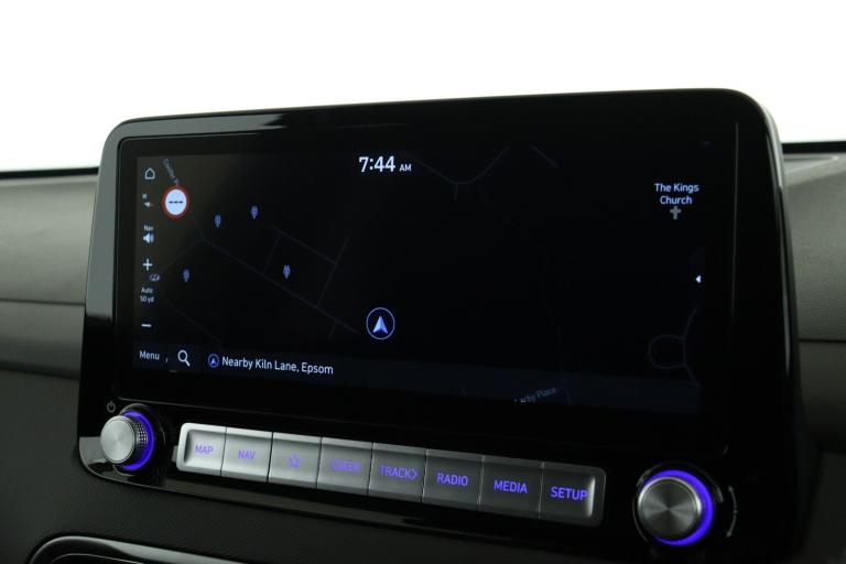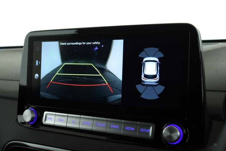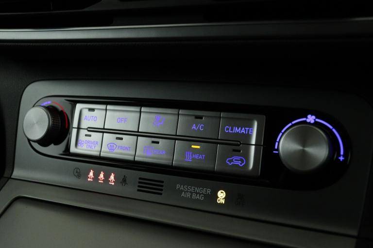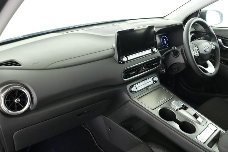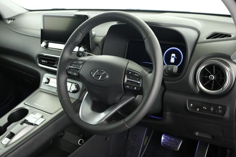 ..10.25'' touchscreen satellite Navigation with Bluelink and Mapcare, Blind spot collision avoidance assist, Bluetooth connectivity with voice recognition, Cruise control - smart adaptive speed control with stop and go function, Digital clock, Drive mode selector, Driver supervision instrument cluster with 10.25'' LCD display, eCall emergency call system, Forward collision assist with pedestrian monitoring and cycle detection, Front parking sensor, Intelligent speed limit warning, Lane follow assist, Lane keep assist, Parking system with rear camera and guidance system, PAS, Phone connection with apple carPlay and android auto, Rear cross traffic collision avoidance (RCCA), Rear parking sensor, Roadside assistance, Windscreen washer fluid sensor and warning indicator, Wireless phone charging pad, 10.5 kWh 3 Phase On Board Charger, 7 pin charging cable, Battery heater, Emergency 3 pin connector charging cable (ICCB), Single speed transmission, Vehicle Stability Control (VSC), Krell premium audio system with 8 speakers and subwoofer, RDS and Digital DAB, Steering wheel mounted audio/phone controls, USB/aux input socket, 3rd brake light, Auto dimming rear view mirror, Automatic headlights with dusk sensor, Automatic windscreen wipers with rain sensor, Body colour door mirrors and handles, Door mirror integrated indicators, Electric front/rear windows with drivers one touch/anti-trap, Electrically adjustable and heated door mirrors, Full LED MFR headlights, LED daytime running lights, LED rear lights, Positioning Lights - LED, Power folding door mirrors, Privacy glass - Rear windows and tailgate, Rear side wing doors, Rear wiper, Roof rails, Solar glass with windscreen shade band, Variable front intermittent wipers, 3 seat bench in 2nd row, 60/40 split folding rear seat, Adjustable head restraints, Ambient lighting, Automatic climate control with defog system for front windscreen, CCS Combo rapid charge port (50kW), Centre interior light, Chrome interior door handles, Cloth upholstery, Door scuff plate, Driver and passenger front seat pockets, Driver's electric adjustable lumbar support, Driver's seat height adjustment, Driver's seat manual adjustment, Driver/passenger sunvisors and illuminated vanity mirrors, Front cup holders, Front interior light, Front passenger seat manual adjustments, Heated front seats, Heated steering wheel, Height/reach adjustable steering column, Leather wrapped steering wheel, Luggage compartment undertray, Rear centre console with