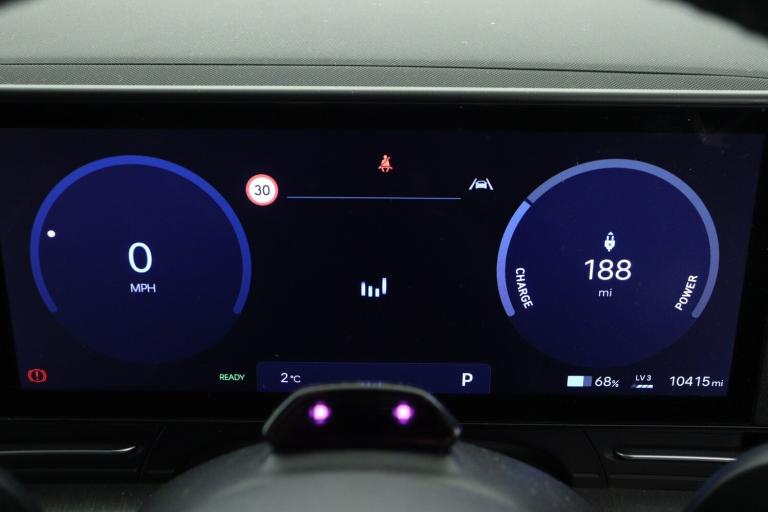 ..12.3'' touchscreen centre console display satellite navigation with bluelink, live services and mapcare, Bluetooth connectivity with voice recognition, Driver status monitor (DSM), Driver supervision instrument cluster with 12.3'' LCD display, eCall emergency call system, Feature on demand - Enabled, Forward collision avoidance assist (FCA 1.5) - Car,pededstrian,cycle and junction turning, Front parking sensor, HDA - Highway Drive Assist Level 1.5, Intelligent speed limit assist, Lane follow assist, Lane keep assist, Leading vehicle departure alert (LVDA), Parking system with rear camera and guidance system, PAS, Rear parking sensor, Roadside assistance, Smart cruise control with stop and go functionality, Wireless Smartphone Integration includes Apple CarPlay and Android auto, Type 2 charging cable, 2 front USB C and 2 rear USB C charging points, DAB Digital radio, Speakers - Front,rear and tweeters, Steering wheel audio,phone and cruise controls, Acoustic film + solar windscreen, Auto dimming rear view mirror, Automatic headlights with dusk sensor, Automatic windscreen wipers with rain sensor, Body colour exterior door handles, Body coloured door mirrors, Body coloured wheel arch inserts, Door mirror LED indicator lights, Electric front windows with anti-trap mechanism and one touch control, Electric rear windows, Electrically adjustable and heated door mirrors, Frunk - under the bonnet storage, Full LED MFR headlights, LED daytime running lights, LED upper and lower rear lights, Power folding door mirrors, Rear roof spoiler with integrated LED brake light, Rear side wing doors, Rear wiper, Roof rails, Satin finished beltline, Tinted glass in front and rear doors, V2L (Vehicle to Load) - Inside, Windscreen auto defog function, 12V power outlet in front console, 2 zone climate control, 3 seat bench in 2nd row, Adjustable head restraints, Cloth upholstery, Driver and passenger front seat pockets, Driver's seat lumbar support, Driver/passenger manual seat height adjustment, Driver/passenger sunvisors and illuminated vanity mirrors, Floor mats, Front cupholder, Heat pump, Height/reach adjustable steering column, Isofix rear child seat fastenings, Leather wrapped steering wheel, LED centre interior light, LED front interior light, Luggage compartment LED lighting, Luggage shelf, Metal paint effect interior door handles, Rear centre armrest with cupholders, Shift by wire SBW, Single front passenger seat, Vertical adjustment rear head restraints, Trailer