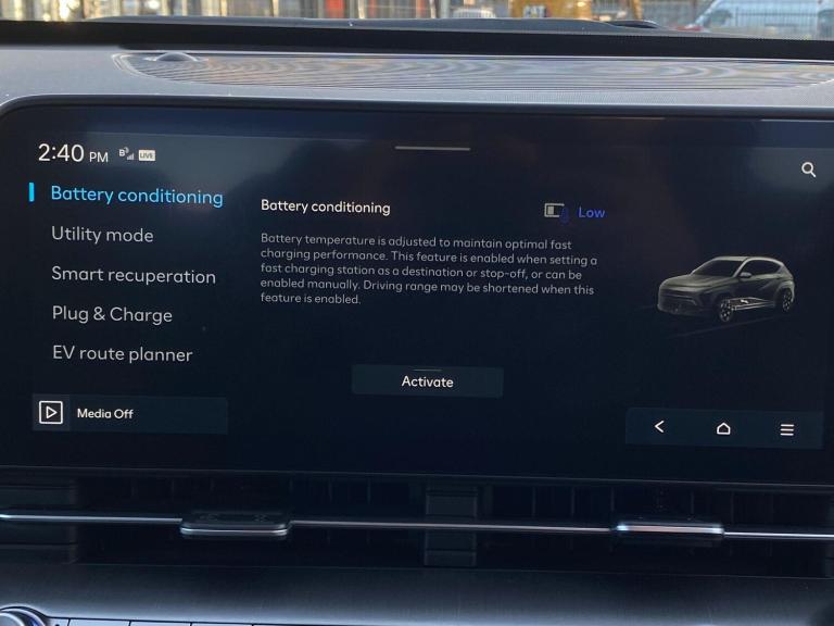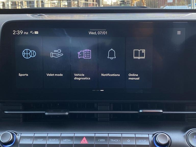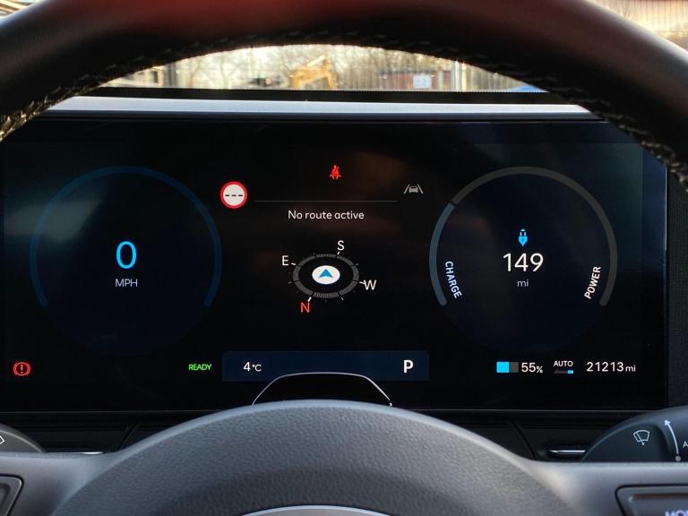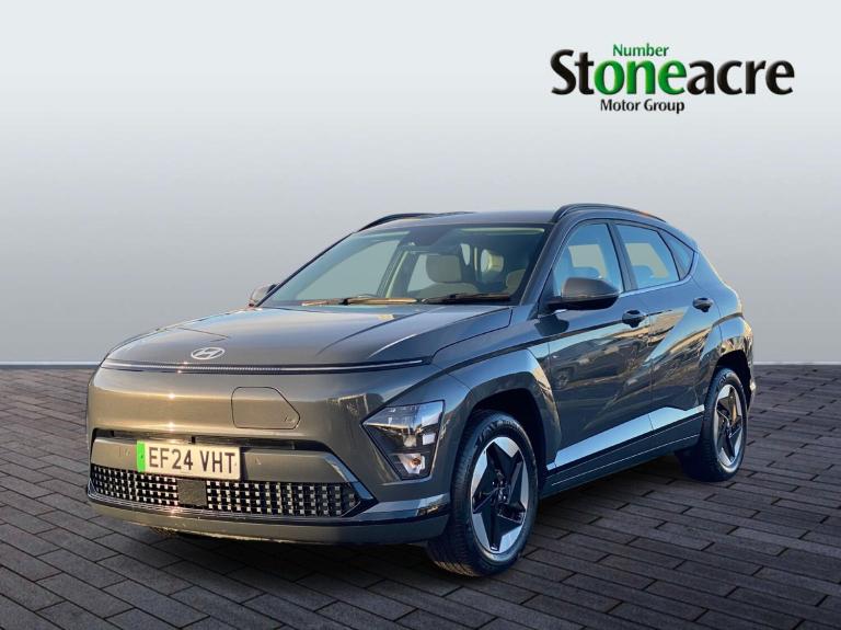 This 2024 Hyundai KONA Advance Electric is a superb example, having had only one owner since new. This stylish electric SUV boasts a substantial 73 kWh battery, offering an impressive maximum range of 319 miles on a full charge. For your comfort and convenience, it features dual zone climate control and Bluetooth connectivity with voice recognition. Navigating and parking are made easier with front and rear parking sensors, while smart adaptive cruise control with stop and go functionality enhances your driving experience. The KONA is also equipped with full MFR LED headlights for excellent visibility.The exceptional 319 mile range highlights how this Hyundai KONA Advance Electric stands out from many other electric vehicles, providing greater freedom for your journeys. Recharging at home using a 7kW charger will take approximately 8 hours and 53 minutes, ensuring it's ready for your daily use. For quicker top ups, a rapid public charger can replenish the battery from empty to 80% in just 46 minutes. This combination of extensive range, convenient charging options, and advanced features makes this KONA a truly compelling choice.
