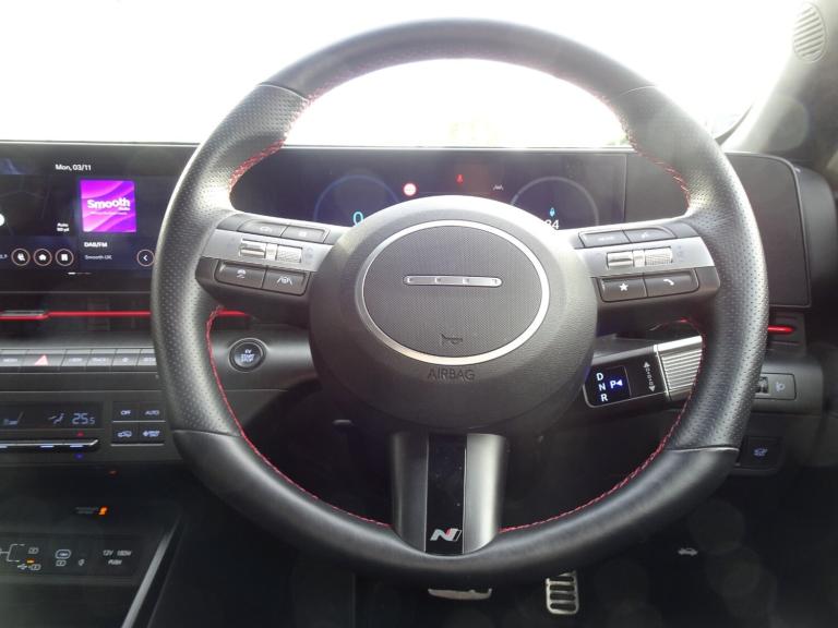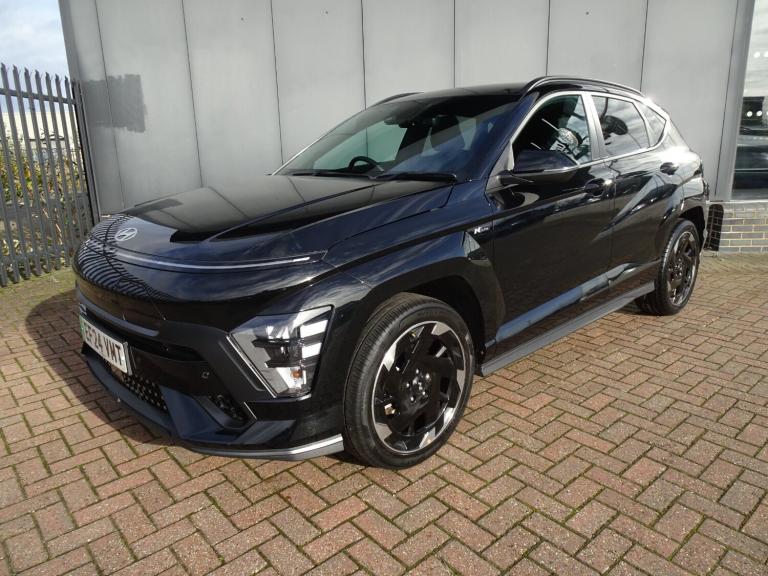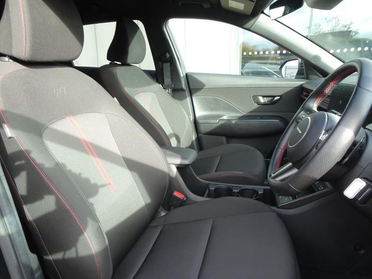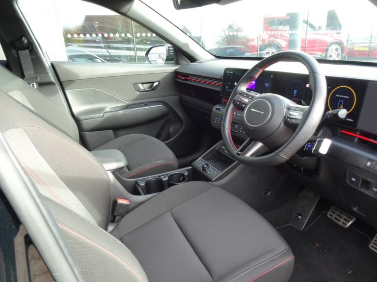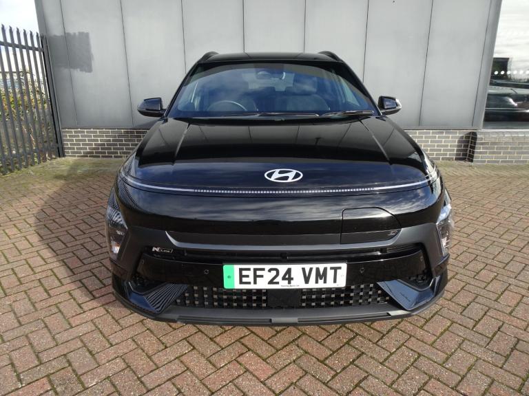 Hyundai Kona 160kW N Line 65kWh 5dr Auto.APPLE CARPLAY*ANDROID AUTO.12.3'' touchscreen centre console display satellite navigation with bluelink, live services and mapcare, Bluetooth connectivity with voice recognition, Driver status monitor (DSM), Driver supervision instrument cluster with 12.3'' LCD display, eCall emergency call system, Feature on demand - Enabled, Forward collision avoidance assist (FCA 1.5) - Car,pededstrian,cycle and junction turning, Front parking sensor, HDA - Highway Drive Assist Level 1.5, Height adjustable power tailgate, Intelligent speed limit assist, Lane follow assist, Lane keep assist, Leading vehicle departure alert (LVDA), Parking system with rear camera and guidance system, PAS, Rear parking sensor, Roadside assistance, Smart cruise control with stop and go functionality, Wireless phone charging pad, Wireless Smartphone Integration includes Apple CarPlay and Android auto, Charging cable - 7 pin type 2, Emergency 3 pin connector charging cable (ICCB), 2 front USB C and 2 rear USB C charging points, DAB Digital radio, Speakers - Front,rear and tweeters, Steering wheel audio,phone and cruise controls, Auto dimming rear view mirror, Automatic headlights with dusk sensor, Automatic windscreen wipers with rain sensor, Body colour exterior door handles, Body coloured wheel arch inserts, Door mirror LED indicator lights, Electric front windows with anti-trap mechanism and one touch control, Electric rear windows, Electrically adjustable and heated door mirrors, Frunk - under the bonnet storage, Full LED MFR headlights, Gloss black door mirrors, LED daytime running lights, LED upper and lower rear lights, N Line interior and exterior styling, Power folding door mirrors, Privacy glass - Rear windows and tailgate, Rear roof spoiler with integrated LED brake light, Rear side wing doors, Rear wiper, Roof rails, Satin finished beltline, Solar glass with front door glass and windscreen, Tinted glass in front and rear doors, V2L (Vehicle to Load) - Inside, Windscreen auto defog function, 12V power outlet in front console, 2 zone climate control, 3 seat bench in 2nd row, 40/20/40 split folding rear seat, Adjustable head restraints, Aluminium pedals, Ambient lighting, Driver and passenger front seat pockets, Driver's seat lumbar support, Driver/passenger manual seat height adjustment, Driver/passenger sunvisors and illuminated vanity mirrors, Floor mats, Front cupholder, Heat pump, Heated front seats, Heated rear seats, Heated steering