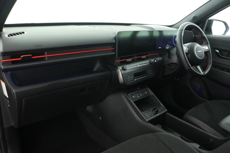 ..12.3'' touchscreen centre console display satellite navigation with bluelink, live services and mapcare, Blind spot collision avoidance assist, Blind spot view monitor, Bluetooth connectivity with voice recognition, Driver status monitor (DSM), Driver supervision instrument cluster with 12.3'' LCD display, eCall emergency call system, Feature on demand - Enabled, Forward collision avoidance assist (FCA 1.5) - Car,pededstrian,cycle and junction turning, Front parking sensor, HDA - Highway Drive Assist Level 1.5, Head up Display, Height adjustable power tailgate, Intelligent speed limit assist, Lane follow assist, Lane keep assist, Leading vehicle departure alert (LVDA), Parking Collision Avoidance Assist-Reverse (PCA-R), Parking distance warning - side, Parking system with rear camera and guidance system, PAS, Rear cross traffic collision avoidance (RCCA), Rear parking sensor, Roadside assistance, Safe exit warning (SEW), Smart cruise control with stop and go functionality, Surround view monitor, Wireless phone charging pad, Wireless Smartphone Integration includes Apple CarPlay and Android auto, Charging cable - 7 pin type 2, Electric active sound design, Emergency 3 pin connector charging cable (ICCB), 2 front USB C and 2 rear USB C charging points, Bose Premium Audio system with 7 premium speakers + subwoofer, DAB Digital radio, Steering wheel audio,phone and cruise controls, Auto dimming rear view mirror, Automatic headlights with dusk sensor, Automatic windscreen wipers with rain sensor, Body colour exterior door handles, Body coloured wheel arch inserts, Door mirror LED indicator lights, Electric front windows with anti-trap mechanism and one touch control, Electric rear windows, Electrically adjustable and heated door mirrors, Front and rear LED turning signals, Frunk - under the bonnet storage, Gloss black door mirrors, Horizon centre LED DRL, LED projector headlights, LED upper and lower rear lights, N Line interior and exterior styling, Power folding door mirrors, Privacy glass - Rear windows and tailgate, Rear roof spoiler with integrated LED brake light, Rear side wing doors, Rear wiper, Roof rails, Satin finished beltline, Solar glass with front door glass and windscreen, Tinted glass in front and rear doors, V2L (Vehicle to Load) - Inside, Windscreen auto defog function, 12V power outlet in front console, 2 zone climate control, 3 seat bench in 2nd row, 40/20/40 split folding rear seat, Adjustable head restraints, Aluminium pedals, Ambient