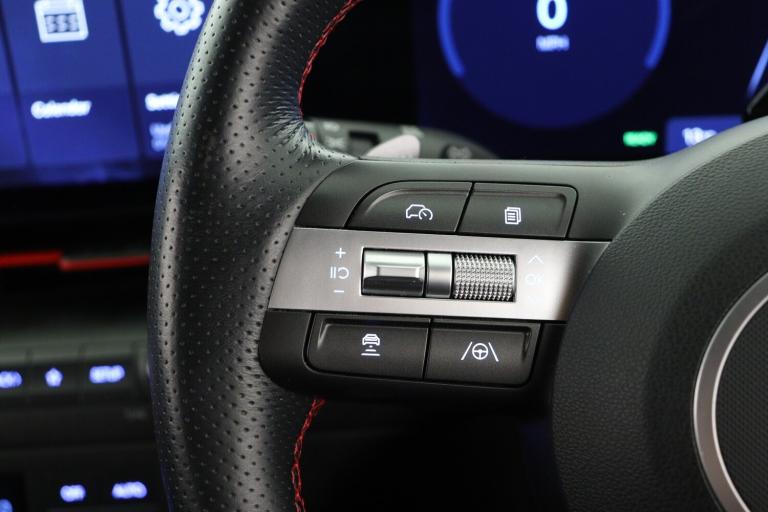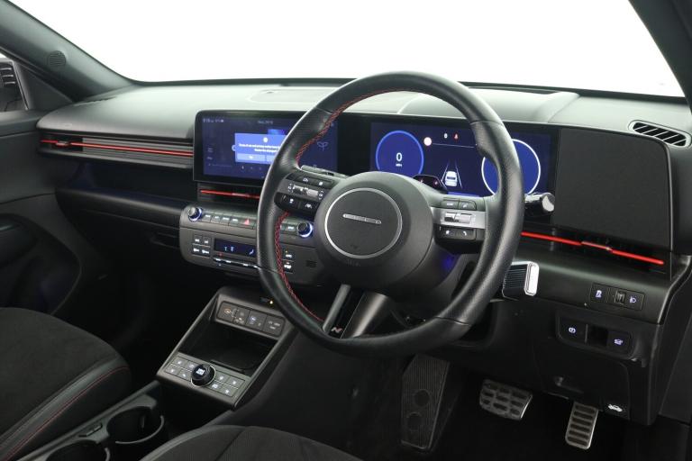 ..12.3'' touchscreen centre console display satellite navigation with bluelink, live services and mapcare, Blind spot collision avoidance assist, Blind spot view monitor, Bluetooth connectivity with voice recognition, Driver status monitor (DSM), Driver supervision instrument cluster with 12.3'' LCD display, eCall emergency call system, Feature on demand - Enabled, Forward collision avoidance assist (FCA 1.5) - Car,pededstrian,cycle and junction turning, Front parking sensor, HDA - Highway Drive Assist Level 1.5, Head up Display, Height adjustable power tailgate, Intelligent speed limit assist, Lane follow assist, Lane keep assist, Leading vehicle departure alert (LVDA), Parking Collision Avoidance Assist-Reverse (PCA-R), Parking distance warning - side, Parking system with rear camera and guidance system, PAS, Rear cross traffic collision avoidance (RCCA), Rear parking sensor, Roadside assistance, Safe exit warning (SEW), Smart cruise control with stop and go functionality, Surround view monitor, Wireless phone charging pad, Wireless Smartphone Integration includes Apple CarPlay and Android auto, Charging cable - 7 pin type 2, Electric active sound design, Emergency 3 pin connector charging cable (ICCB), 2 front USB C and 2 rear USB C charging points, Bose Premium Audio system with 7 premium speakers + subwoofer, DAB Digital radio, Steering wheel audio,phone and cruise controls, Auto dimming rear view mirror, Automatic headlights with dusk sensor, Automatic windscreen wipers with rain sensor, Body colour exterior door handles, Body coloured wheel arch inserts, Door mirror LED indicator lights, Electric front windows with anti-trap mechanism and one touch control, Electric rear windows, Electrically adjustable and heated door mirrors, Front and rear LED turning signals, Frunk - under the bonnet storage, Gloss black door mirrors, Horizon centre LED DRL, LED projector headlights, LED upper and lower rear lights, N Line interior and exterior styling, Power folding door mirrors, Privacy glass - Rear windows and tailgate, Rear roof spoiler with integrated LED brake light, Rear side wing doors, Rear wiper, Roof rails, Satin finished beltline, Solar glass with front door glass and windscreen, Tinted glass in front and rear doors, V2L (Vehicle to Load) - Inside, Windscreen auto defog function, 12V power outlet in front console, 2 zone climate control, 3 seat bench in 2nd row, 40/20/40 split folding rear seat, Adjustable head restraints, Aluminium pedals, Ambient