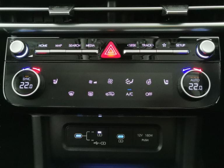 Discover the Hyundai Tucson Premium in stunning grey, combining style with sophistication. Enjoy seamless journeys with keyless entry, Apple CarPlay, and a premium upgraded sound system. Drive safely with lane departure warning and a reversing camera, while LED headlights illuminate every road. Relax inside with heated electric seats, a heated steering wheel, sunblinds, and built-in Sat Nav. Effortlessly versatile with black roof rails and advanced cruise control the perfect hybrid SUV for every adventure. 1 service recorded, last serviced on 09/07/2025 at 7,418 miles. MOT to 28/06/2027. Visit our website for service history, online valuation, full vehicle specification plus multiple images. This vehicle is VAT qualifying. Any feature/option specified here is from 3rd party data. We cannot guarantee the accuracy of any specification supplied by a 3rd party. We recommend that you physically check the specification of the vehicle on site prior to purchase. This information does not form part of the buying contract. Terms & Conditions apply. We have over 2,000 cars available from our 10 national branches, check our website to see all our stock. Our Trustpilot rating is 4.4/5 with over 9,000 reviews.