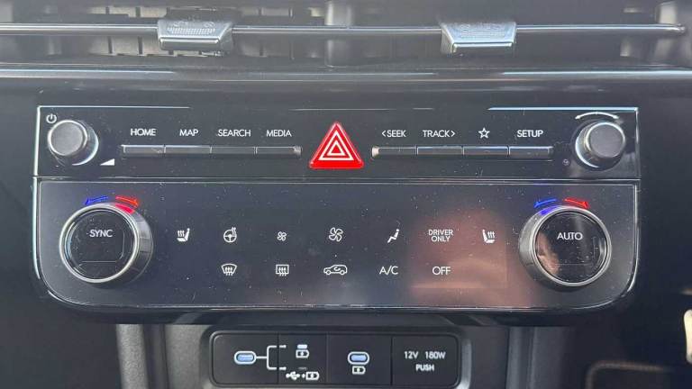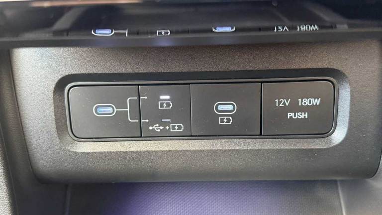 ..Exterior Features, Adjustable intermittent front windscreen wipers with aero wiper blade, Automatic defog system, Automatic windscreen wipers with rain sensor, Front and rear electric windows with anti-trap mechanism and one touch control, Privacy glass - Rear windows and tailgate, Rear wash/wipe with intermittent wipe setting, Tinted glass with windscreen shade band, Body colour bumpers, Body colour exterior door handles, Body coloured wheel arches, Glossy black bumper mouldings, Rear side wing doors, Roof rails, Soft touch rear door paneling, Automatic headlights with dusk sensor, Follow me home headlights, Front fog lights, LED 3rd brake light, LED daytime running lights, LED Headlights, LED rear lights, Positioning Lights - LED, Safety, Anti-lock brake system (ABS), Brake assist function, Downhill brake control, Electric parking brake, Electronic stability control, Hill start assist control (HAC), Multi-Collision braking, Traction control, Vehicle stability management, Cruise control - smart adaptive speed control with stop and go function, Drive mode selector, Driver attention warning, Emergency stop signalling system, Forward Collision Avoidance Assist (FCA) - Car, Pedestrian and Cycle, Forward Collision Avoidance Assist Junction Turning (FCAJX), Front and rear parking sensors, Highway Driving Assist (HDA), Intelligent speed limit assist, Lane follow assist, Lane keep assist, PAS, Rear camera and guidance parking system, Auto dimming rear view mirror, Body colour door mirrors with integrated indicators, Electrically adjustable, heated and power folding door mirrors, 3x3 point rear seatbelts, Active bonnet, Airbag - Front, front side, curtain and centre front airbags, Childproof rear door locks, Curtain airbag roll over sensor, Front and rear seatbelt reminder, Front passenger airbag deactivation switch, Front seatbelt pretensioners, Outer rear seatbelt height adjustment, Seatbelt height adjustment for front seats, Tyre pressure monitoring system with individual tyre pressure display - TPMS, Audio / Communications, Bluetooth system, E-call, Voice recognition, Wireless Apple CarPlay/Android Auto, Wireless phone charging pad, 2 front and 2 rear speakers with 2 tweeters, 2 front and 2 rear USB-C ports, DAB Digital radio, Steering wheel mounted audio/phone controls, Driver Convenience, Hyundai road side assistance, Smart power tailgate, Miscellaneous, 12.3'' LCD display with driver's supervision instrument cluster, 12.3'' widescreen navigation