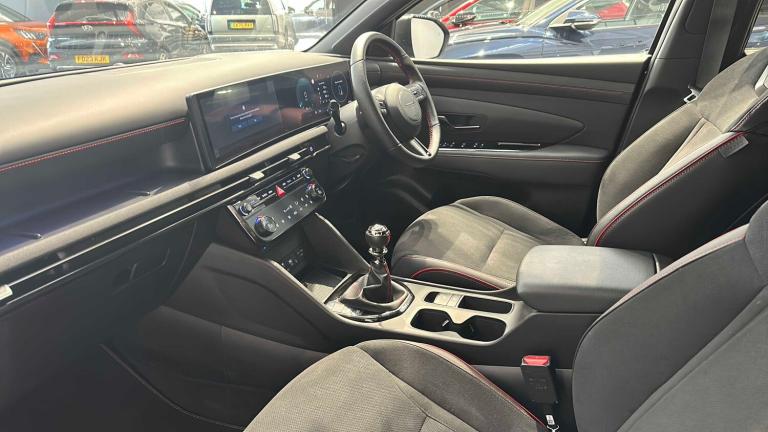 Abyss Black, 12.3in Widescreen Navigation with Bluelink and Mapcare, 12V Power Outlet - Front Centre Facia and Luggage Compartment, 12in Projection Head-Up Display, Blind Spot View Monitor, BlueLink, Bluetooth Connectivity, Cruise Control, Daytime Running Lights - LED, Drive Mode Select, Forward Collision-Avoidance Assist - FCA with Car - Pedestrian and Cycle, Forward Collision-Avoidance Assist - Junction Turning, Headlights - Automatic with Dusk Sensor, Headlights - Matrix LED, Intelligent Speed Limit Assist - ISLA, Krell Premium Audio - 8 Speakers and Subwoofer, Over The Air - OTA - Navigation Map Updates, Parking Distance Warning - Front-Rear-Side, Parking sensors - Front and Rear, Parking System - Rear Camera and Guidance System, Phone Connection - Android Auto, Phone Connection - Apple CarPlay, Power Assisted Steering, Rear Lights - LED, Speakers - 2 Tweeters - 2 Front - 2 Rear, Surround View Monitor - SVM, Trailer Wiring Package, Tyre Pressure Monitoring System with Individual Tyre Pressure Display, USB C - Front x2, USB C - Rear x2, Windscreen Washer Fluid Sensor and Warning Indicator, Wireless Phone Charging Pad, ECall, 19in Alloy Wheels - N-Line Design, Bumper Mouldings - Glossy Black, Door Mirrors - Electric Adjustment and Heated with Power Folding Function, Door Mirrors with Integrated Indicators - Body Coloured, Electric Windows - Front and Rear with Anti-Trap Mechanism and One Touch Control, Exterior Door Handles - Body Coloured, Locking Wheel Nuts, N Line Design Package, Panoramic Sunroof - Glass - Electric Tilt and Slide, Privacy Glass - Rear Windows and Tailgate, Roof Rails, Tyre Repair Kit, Wheel Arch Inserts - Body Coloured, 64 Colour Selectable Ambient interior Lighting, Adjustable Head Restraints, Air Conditioning - Climate Control - Three Zone, Armrest - Front with Storage, Armrest - Rear with Cup Holders, Automatic Dimming Rear View Mirror, Automatic Windscreen Wipers with Rain Sensor, Bottle Holders - Front Centre Console and Doors, Drivers Seat Height Adjustment - Electric, Drivers Supervision Instrument Cluster with LCD Display 12.3in, Front Passengers Seat Electric Adjustments, Front Ventilated Seats, Heated Front Seats, Heated Rear Seats, Heated Steering Wheel, Interior Light - Luggage Compartment, Interior Light - Map Reading Lights, Lane Follow Assist - LFA, Leather Wrapped Steering Wheel and Gear Knob, Luggage Cover, Luggage Hooks, Luggage Net, Metal Pedals, N Line Interior Design Package, Rear Seat - Remote Folding Function,