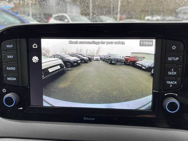 ..Exterior Features, 1 speed non intermittent rear windscreen wiper, Electric front windows, Electric rear windows, Front intermittent wipers, Heated rear window, Black finish on B pillars, Body colour door handles, Body coloured bumpers, Flat metal emblem, Front grille in matte black, Rear roof spoiler with integrated LED brake light, Rear side wing doors, Halogen headlights, Headlights inner with Black Blade design, High beam assist, LED daytime running lights, Safety, Anti-lock brake system (ABS), Brake assist function, Electronic stability control, Hill start assist control (HAC), Traction control, Bluelink mobile remote connectivity, Cruise control, Driver attention alert system, Forward Collision-Avoidance Assist (FCA) - Pedestrian/Cyclist, Intelligent speed limit assist, Lane departure warning system with lane keep assist - LKAS, Lane follow assist, PAS, Rear parking sensors, Rear view camera with guidelines, Body coloured door mirrors, Electrically adjustable and heated door mirrors, Indicator light on door mirrors, 3x3 point rear seatbelts, Airbags - front, front side and curtain airbags, Autonomous emergency braking (AEB) with forward collision warning system, Childproof rear door locks, Front and rear seatbelt reminder, Front seatbelt pretensioners, Passenger airbag deactivate switch, Tyre pressure monitoring system, Interior Features, Floor mats, Manual air conditioning, 12v power outlet - front, Bottle holders in front/rear doors + front centre console, Cloth upholstery, Front door pockets, Glove compartment, Height adjustable steering column, Leather wrapped steering wheel and gear knob, Rear door pockets, Auto light control, Cabin and luggage compartment interior lighting, Driver + passenger vanity mirrors, Driver/passenger sunvisors with ticket holders, Audio / Communications, Apple car play/Android Auto, Bluetooth connectivity with voice recognition, eCall emergency call system, Roadside assistance, 2 front/2 rear speakers, Front and rear USB-C ports, Front USB connection, Leading vehicle alert (LVA), Steering wheel audio, phone and cruise controls, Driver Convenience, Start/Stop function, Tailgate, Miscellaneous, 8'' Touchscreen satellite navigation including mapcare and LIVE services, Full-width 4.2'' LCD instrument cluster, Trip computer, Trim, 3 seat bench in 2nd row, 60/40 split folding flat to floor rear seats, Driver's seat height adjustment, Front Head Restraints - Vertical and Horizontal Adjustment, Isofix child seat