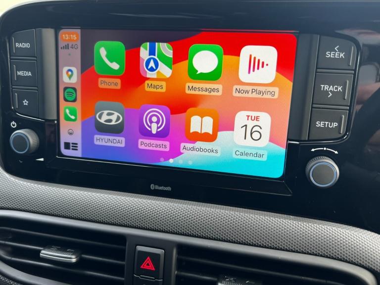 Hyundai i10 Advance 1.0 63PS AutomaticRegistered with only delivery miles Unlimited Mileage Hyundai Warranty until 20/06/2030Compact in size but big on features, the Hyundai i10 Advance Automatic delivers stylish design, excellent practicality, and impressive technology. Powered by a refined 1.0-litre 63PS engine with an automatic transmission, its the ideal choice for effortless city driving and beyond.Key Features:15'' Alloy WheelsBody-Coloured Bumpers & Door MirrorsElectrically Adjustable & Heated Door MirrorsRear Spoiler with Integrated LED Brake LightFront & Rear Electric WindowsLeather-Wrapped Steering Wheel & Gear KnobBlack Cloth Seats with White Stripe TrimManual Height Adjustment (Drivers Seat)60/40 Split-Folding Rear SeatsManual Air ConditioningTechnology & Convenience:8'' Touchscreen Display AudioApple CarPlay & Android AutoBluetooth Connectivity with Voice RecognitionRear Parking Sensors & Rear-View CameraUSB Charging Ports (Front & Rear)Cruise Control & Manual Speed Limit AssistKeyless EntryFloor MatsSafety & Assistance:Forward Collision-Avoidance Assist (Car, Pedestrian, Cycle)Lane Keep Assist (LKA) & Lane Follow Assist (LFA)Intelligent Speed Limit Assist (ISLA)Driver Attention Warning (DAW) & Leading Vehicle Alert (LVA)Hill-Start Assist Control (HAC)Electronic Stability Control (ESC)Tyre Pressure Monitoring System (TPMS)ISOfix Child Seat Anchorage Points (Rear)eCall Emergency AssistanceStylish, comfortable, and packed with smart technology, the Hyundai i10 Advance Auto offers incredible value and peace of mind, backed by Hyundais 5-Year Unlimited Mileage Warranty from the registration date.Contact Motorvogue Hyundai today to arrange your test drive or to learn more about finance and part-exchange options on this feature-packed compact hatchback..AUTO*BLUETOOTH.8'' Touchscreen satellite navigation including mapcare and LIVE services, Apple car play/Android Auto, Bluelink mobile remote connectivity, Bluetooth connectivity with voice recognition, Cruise control, Driver attention alert system, eCall emergency call system, Forward Collision-Avoidance Assist (FCA) - Pedestrian/Cyclist, Full-width 4.2'' LCD instrument cluster, Intelligent speed limit assist, Lane departure warning system with lane keep assist - LKAS, Lane follow assist, PAS, Rear parking sensors, Rear view camera with guidelines, Roadside assistance, Start/Stop function, Tailgate, Trip computer, 2 front/2 rear speakers, Front and rear USB-C ports, Front USB connection, Leading
