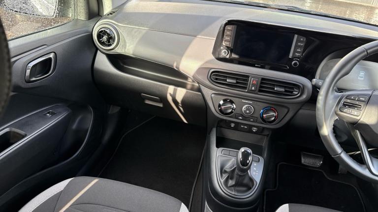 This Hyundai i10 Hatchback 1.0 [63] Advance Auto [Nav], finished in Aurora Grey and showing just over 6,000 miles, combines easy to drive automatic performance with a high level of specification in a compact, city friendly package. Powered by a 1.0 litre petrol engine mated to a smooth automatic transmission, it delivers effortless and economical motoring whether you're commuting, running errands or heading out for longer journeys. The Advance trim includes touchscreen navigation with Apple CarPlay and Android Auto, rear parking sensors, air conditioning, keyless entry and a modern infotainment system for added convenience and comfort. With its attractive paintwork, low mileage and well equipped interior, this i10 Advance Auto offers a refined and practical small car experience. A personalised video presentation is available on request..Air Conditioning, Metallic Paint, Cruise Control, Satellite Navigation, Alloy Wheels, DAB Radio, Bluetooth, Parking Sensors, Low Mileage, USB, Keyless Entry-Push Button Start, Apple-Android Play, Auto Lights& Lane Keeping Assist, Floor mats, Electric front windows, Electric rear windows, Heated rear window, Front intermittent wipers, 1 speed non intermittent rear windscreen wiper, Traction control, Electronic stability control, Brake assist function, Hill start assist control (HAC), Anti-lock brake system (ABS), Bluetooth connectivity with voice recognition, Apple car play/Android Auto, Roadside assistance, Cruise control, PAS, Rear parking sensors, Driver attention alert system, Lane departure warning system with lane keep assist - LKAS, Lane follow assist, Intelligent speed limit assist, Forward Collision-Avoidance Assist (FCA) - Pedestrian/Cyclist, Rear view camera with guidelines, Bluelink mobile remote connectivity, Trip computer