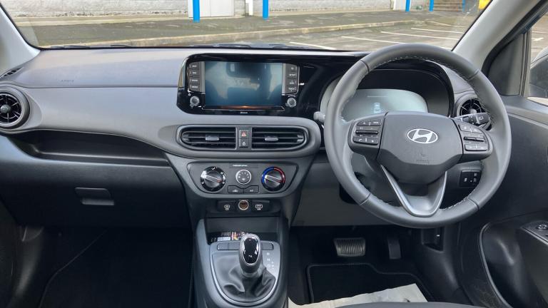 Meet the Hyundai i10 that’s barely had time to stretch its legs — just 10 miles on the clock — and already bursting with big-car attitude. This is city motoring turned up to eleven, wrapped in a compact, confidence-packed package that feels fresh, modern and irresistibly clever.Slide inside and you’re greeted by a cabin that punches well above its weight. Apple CarPlay seamlessly mirrors your smartphone, putting navigation, music and messages right at your fingertips, so every journey feels connected and effortless. Bluetooth keeps calls crystal clear and hands-free, while Digital Radio delivers a soundtrack with depth and clarity that makes even the shortest commute feel like an event.Out on the road, the i10’s technology really shines. The reversing camera takes the stress out of tight parking spots, giving you a clear view and total confidence when manoeuvring in busy urban spaces. Lane Assist quietly works in the background, helping keep you safely on track and adding an extra layer of reassurance on longer drives. It’s subtle, smart safety that looks out for you without ever getting in the way.Comfort hasn’t been forgotten either. Supportive seats, excellent visibility and a surprisingly refined ride make the i10 a joy whether you’re darting through town or cruising further afield. It’s light, agile and eager — the sort of car that makes you look forward to driving again.Buy from Vertu Hyundai Bristol and the experience gets even better. You’ll benefit from a comprehensive warranty for peace of mind, and the confidence that your car has been prepared and maintained by manufacturer-trained Hyundai technicians who know it inside out. Add friendly, expert service and you’ve got a winning combination.Small car. Big tech. Serious excitement..Metallic Paint, Satellite Navigation, DAB Radio, Bluetooth, Apple-Android Play& Rear Camera, Floor mats, Electric front windows, Electric rear windows, Heated rear window, Front intermittent wipers, 1 speed non intermittent rear windscreen wiper, Traction control, Electronic stability control, Brake assist function, Hill start assist control (HAC), Anti-lock brake system (ABS), Bluetooth connectivity with voice recognition, Apple car play/Android Auto, Roadside assistance, Cruise control, PAS, Rear parking sensors, Driver attention alert system, Lane departure warning system with lane keep assist - LKAS, Lane follow assist, Intelligent speed limit assist, Forward Collision-Avoidance Assist (FCA) - Pedestrian/Cyclist, Rear view camera with guidelines, Bluelink mobile remote connectivity, Trip computer, eCall emergency call system, Full-width 4.2"" LCD instrument cluster, 12.5"" touchscreen centre console display audio with navigation, mapcare and live services