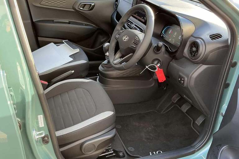 This 2025 Hyundai i10 Advance is a Hyundai manufacturer approved vehicle with only one owner from new, offering peace of mind. It features a responsive 1.0L petrol engine and meets the Euro 6 emission class. For convenience, it comes equipped with rear parking sensors, including parking assistance, and Bluetooth connectivity with voice recognition.This i10 Advance stands out with its impressive fuel economy, achieving up to 57 miles per gallon, which is a significant advantage for everyday driving. Furthermore, its low insurance group and low CO2 emissions indicate that running costs are kept to a minimum, making it a more economical choice compared to similar vehicles.