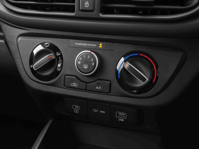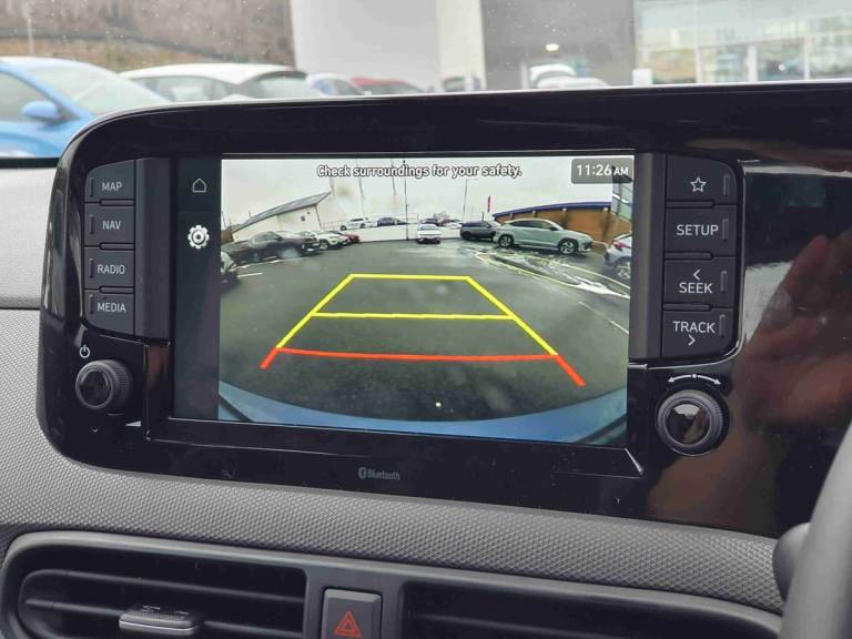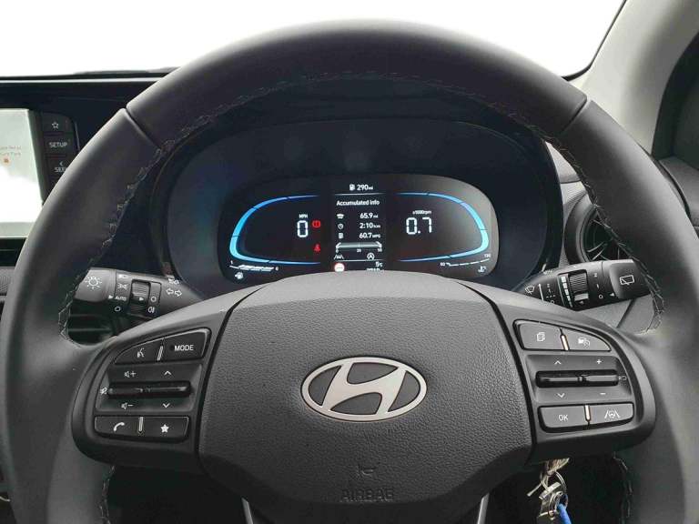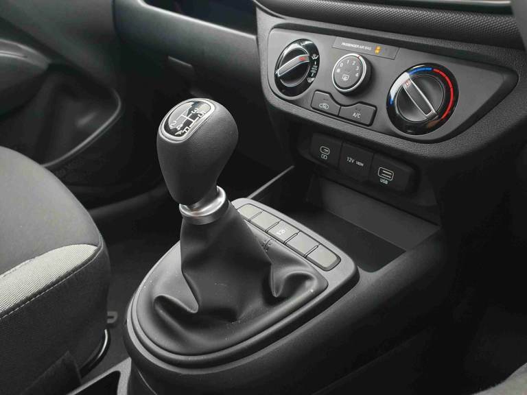 ..8'' Touchscreen satellite navigation including mapcare and LIVE services, Apple car play/Android Auto, Bluelink mobile remote connectivity, Bluetooth connectivity with voice recognition, Cruise control, Driver attention alert system, eCall emergency call system, Forward Collision-Avoidance Assist (FCA) - Pedestrian/Cyclist, Full-width 4.2'' LCD instrument cluster, Intelligent speed limit assist, Lane departure warning system with lane keep assist - LKAS, Lane follow assist, PAS, Rear parking sensors, Rear view camera with guidelines, Roadside assistance, Start/Stop function, Tailgate, Trip computer, 2 front/2 rear speakers, Front and rear USB-C ports, Front USB connection, Leading vehicle alert (LVA), Steering wheel audio, phone and cruise controls, 1 speed non intermittent rear windscreen wiper, Black finish on B pillars, Body colour door handles, Body coloured bumpers, Body coloured door mirrors, Electric front windows, Electric rear windows, Electrically adjustable and heated door mirrors, Flat metal emblem, Front grille in matte black, Front intermittent wipers, Halogen headlights, Headlights inner with Black Blade design, Heated rear window, High beam assist, Indicator light on door mirrors, LED daytime running lights, Rear roof spoiler with integrated LED brake light, Rear side wing doors, 12v power outlet - front, 3 seat bench in 2nd row, 60/40 split folding flat to floor rear seats, Auto light control, Bottle holders in front/rear doors + front centre console, Cabin and luggage compartment interior lighting, Cloth upholstery, Driver + passenger vanity mirrors, Driver's seat height adjustment, Driver/passenger sunvisors with ticket holders, Floor mats, Front door pockets, Front Head Restraints - Vertical and Horizontal Adjustment, Glove compartment, Height adjustable steering column, Isofix child seat preparation, Leather wrapped steering wheel and gear knob, Manual air conditioning, Rear door pockets, Single front passenger seat, Vertical adjustment rear head restraints, 3x3 point rear seatbelts, Airbags - front, front side and curtain airbags, Anti-lock brake system (ABS), Autonomous emergency braking (AEB) with forward collision warning system, Brake assist function, Childproof rear door locks, Electronic stability control, Front and rear seatbelt reminder, Front seatbelt pretensioners, Hill start assist control (HAC), Passenger airbag deactivate switch, Traction control, Tyre pressure monitoring system, Immobiliser, Perimeter alarm, Rear