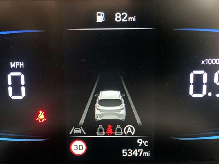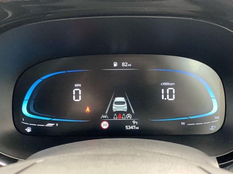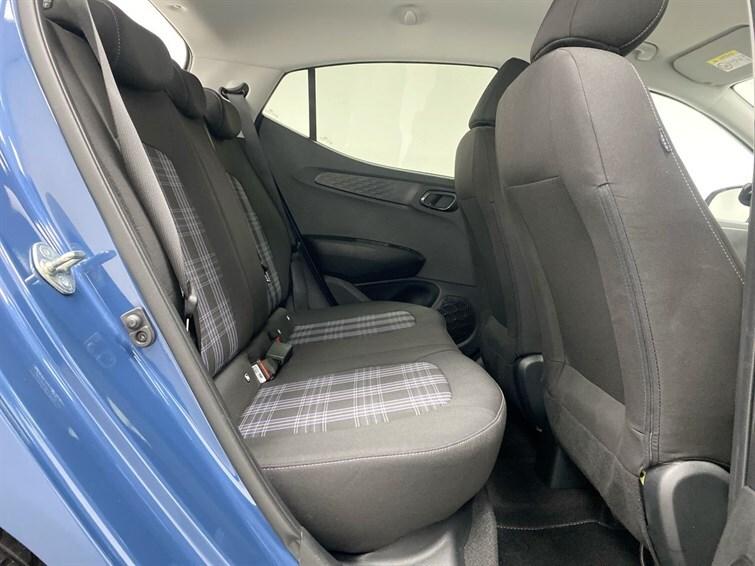 1 speed non intermittent rear windscreen wiper,12v power outlet - front,13"" Rear brake discs,16"" alloy wheels,2 front/2 rear speakers,3 seat bench in 2nd row,3x3 point rear seatbelts,60/40 split folding flat to floor rear seats,8"" Touchscreen satellite navigation including mapcare and LIVE services,Air conditioning climate control,Airbags - front, front side and curtain airbags,Anti-lock brake system (ABS),Apple car play/Android Auto,Auto light control,Autonomous emergency braking (AEB) with forward collision warning system,Black finish on B pillars,Bluelink mobile remote connectivity,Bluetooth connectivity with voice recognition,Body colour door handles,Body coloured bumpers,Body coloured door mirrors,Bottle holders in front/rear doors + front centre console,Brake assist function,Cabin and luggage compartment interior lighting,Childproof rear door locks,Cloth upholstery,Cruise control,Driver + passenger vanity mirrors,Driver attention alert system,Driver's seat height adjustment,Driver/passenger sunvisors with ticket holders,eCall emergency call system,Electric folding door mirrors,Electric front windows,Electric rear windows,Electrically adjustable and heated door mirrors,Electronic stability control,Flat metal emblem,Floor mats,Forward Collision-Avoidance Assist (FCA) - Pedestrian/Cyclist,Front and rear seatbelt reminder,Front and rear USB-C ports,Front door pockets,Front fog lights,Front grille in glossy black,Front Head Restraints - Vertical and Horizontal Adjustment,Front intermittent wipers,Front LED blue mood lighting,Front seatbelt pretensioners,Front USB connection,Full-width 4.2"" LCD instrument cluster,Glove compartment,Halogen bi-function headlights,Headlights inner with Black Blade design,Heated front seats,Heated rear window,Heated steering wheel,Height adjustable steering column,High beam assist,Hill start assist control (HAC),Immobiliser,Indicator light on door mirrors,Intelligent speed limit assist,Isofix child seat preparation,Lane departure warning system with lane keep assist - LKAS,Lane follow assist,Leading vehicle alert (LVA),Leather wrapped steering wheel and gear knob,LED daytime running lights,Metallic grey dashboard finisher with Meta Blue air vent rings, black/purple grey C-Pad and dark met,PAS,Passenger airbag deactivate switch,Perimeter alarm,Privacy glass for rear window,Rear door pockets,Rear occupant alert,Rear parking sensors,Rear roof spoiler with integrated LED brake light,Rear side wing doors,Rear view camer...