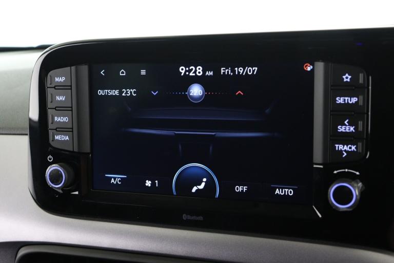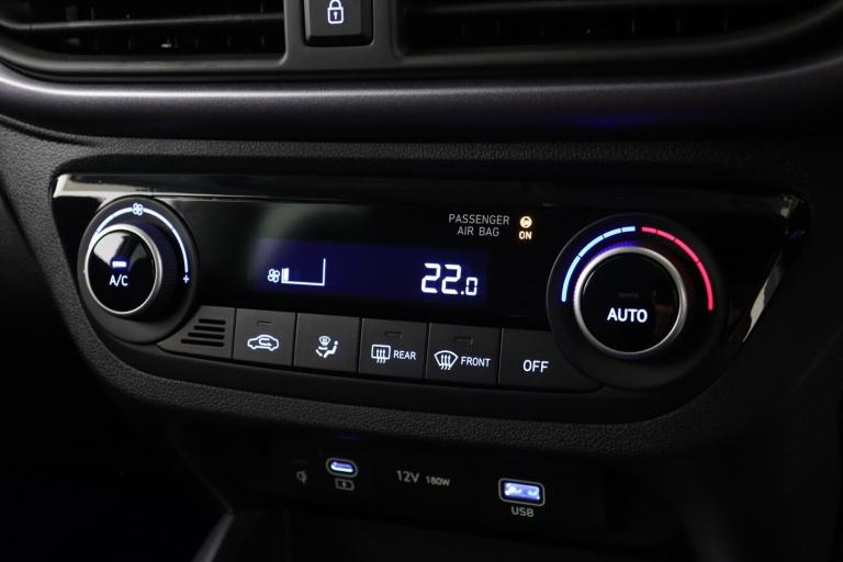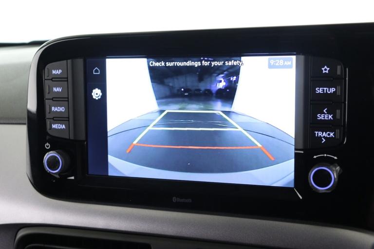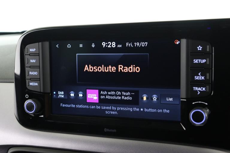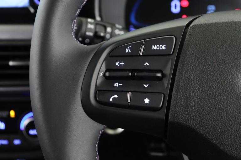 ..8'' Touchscreen satellite navigation including mapcare and LIVE services, Apple car play/Android Auto, Bluelink mobile remote connectivity, Bluetooth connectivity with voice recognition, Cruise control, Driver attention alert system, eCall emergency call system, Forward Collision-Avoidance Assist (FCA) - Pedestrian/Cyclist, Full-width 4.2'' LCD instrument cluster, Intelligent speed limit assist, Lane departure warning system with lane keep assist - LKAS, Lane follow assist, PAS, Rear parking sensors, Rear view camera with guidelines, Roadside assistance, Tailgate, Trip computer, Wireless charging pad, 2 front/2 rear speakers, Front and rear USB-C ports, Front USB connection, Leading vehicle alert (LVA), Steering wheel audio, phone and cruise controls, 1 speed non intermittent rear windscreen wiper, Black finish on B pillars, Body colour door handles, Body coloured bumpers, Body coloured door mirrors, Electric folding door mirrors, Electric front windows, Electric rear windows, Electrically adjustable and heated door mirrors, Flat metal emblem, Front fog lights, Front grille in glossy black, Front intermittent wipers, Halogen bi-function headlights, Headlights inner with Black Blade design, Heated rear window, High beam assist, Indicator light on door mirrors, LED daytime running lights, Privacy glass for rear window, Rear roof spoiler with integrated LED brake light, Rear side wing doors, 12v power outlet - front, 3 seat bench in 2nd row, 60/40 split folding flat to floor rear seats, Air conditioning climate control, Auto light control, Bottle holders in front/rear doors + front centre console, Cabin and luggage compartment interior lighting, Cloth upholstery, Driver + passenger vanity mirrors, Driver's seat height adjustment, Driver/passenger sunvisors with ticket holders, Floor mats, Front door pockets, Front Head Restraints - Vertical and Horizontal Adjustment, Front LED blue mood lighting, Glove compartment, Heated front seats, Heated steering wheel, Height adjustable steering column, Isofix child seat preparation, Leather wrapped steering wheel and gear knob, Metallic grey dashboard finisher with Meta Blue air vent rings, black/purple grey C-Pad and dark metallic garnish console, Rear door pockets, Single front passenger seat, Vertical adjustment rear head restraints, 13'' Rear brake discs, 3x3 point rear seatbelts, Airbags - front, front side and curtain airbags, Anti-lock brake system (ABS), Autonomous emergency braking (AEB) with forward