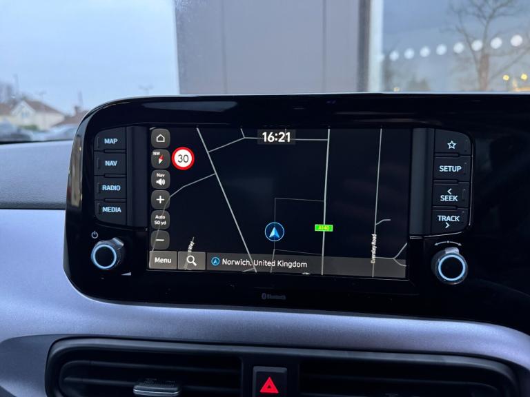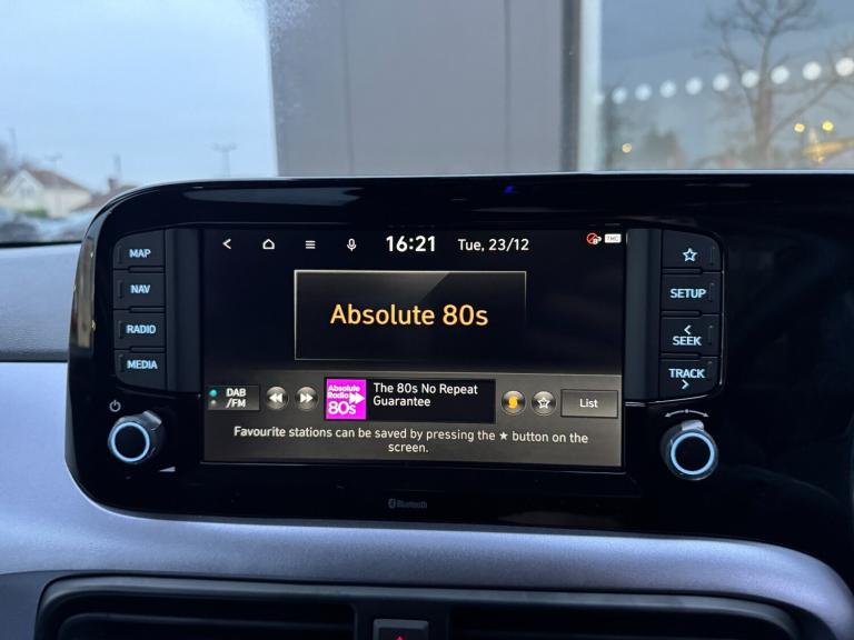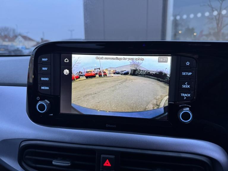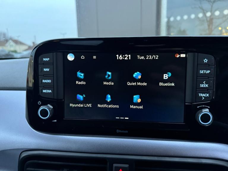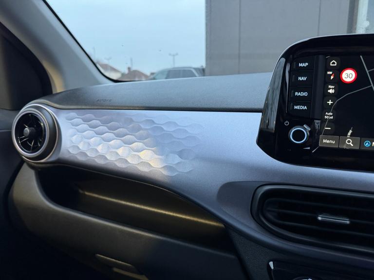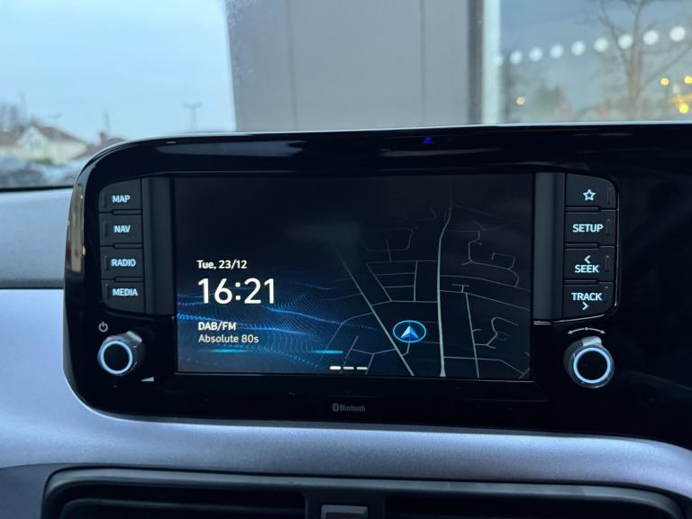 Hyundai I10 1.2 [79] Premium 5dr Auto [Nav].HEATED SEATS*APPLE CARPLAY.8'' Touchscreen satellite navigation including mapcare and LIVE services, Apple car play/Android Auto, Bluelink mobile remote connectivity, Bluetooth connectivity with voice recognition, Cruise control, Driver attention alert system, eCall emergency call system, Forward Collision-Avoidance Assist (FCA) - Pedestrian/Cyclist, Full-width 4.2'' LCD instrument cluster, Intelligent speed limit assist, Lane departure warning system with lane keep assist - LKAS, Lane follow assist, PAS, Rear parking sensors, Rear view camera with guidelines, Roadside assistance, Tailgate, Trip computer, Wireless charging pad, 2 front/2 rear speakers, Front and rear USB-C ports, Front USB connection, Leading vehicle alert (LVA), Steering wheel audio, phone and cruise controls, 1 speed non intermittent rear windscreen wiper, Black finish on B pillars, Body colour door handles, Body coloured bumpers, Body coloured door mirrors, Electric folding door mirrors, Electric front windows, Electric rear windows, Electrically adjustable and heated door mirrors, Flat metal emblem, Front fog lights, Front grille in glossy black, Front intermittent wipers, Halogen bi-function headlights, Headlights inner with Black Blade design, Heated rear window, High beam assist, Indicator light on door mirrors, LED daytime running lights, Privacy glass for rear window, Rear roof spoiler with integrated LED brake light, Rear side wing doors, 12v power outlet - front, 3 seat bench in 2nd row, 60/40 split folding flat to floor rear seats, Air conditioning climate control, Auto light control, Bottle holders in front/rear doors + front centre console, Cabin and luggage compartment interior lighting, Cloth upholstery, Driver + passenger vanity mirrors, Driver's seat height adjustment, Driver/passenger sunvisors with ticket holders, Floor mats, Front door pockets, Front Head Restraints - Vertical and Horizontal Adjustment, Front LED blue mood lighting, Glove compartment, Heated front seats, Heated steering wheel, Height adjustable steering column, Isofix child seat preparation, Leather wrapped steering wheel and gear knob, Metallic grey dashboard finisher with Meta Blue air vent rings, black/purple grey C-Pad and dark metallic garnish console, Rear door pockets, Single front passenger seat, Vertical adjustment rear head restraints, 13'' Rear brake discs, 3x3 point rear seatbelts, Airbags - front, front side and curtain airbags, Anti-lock brake