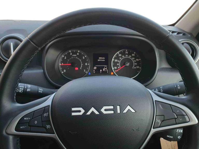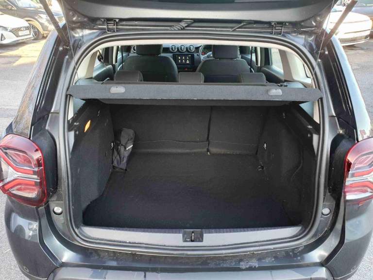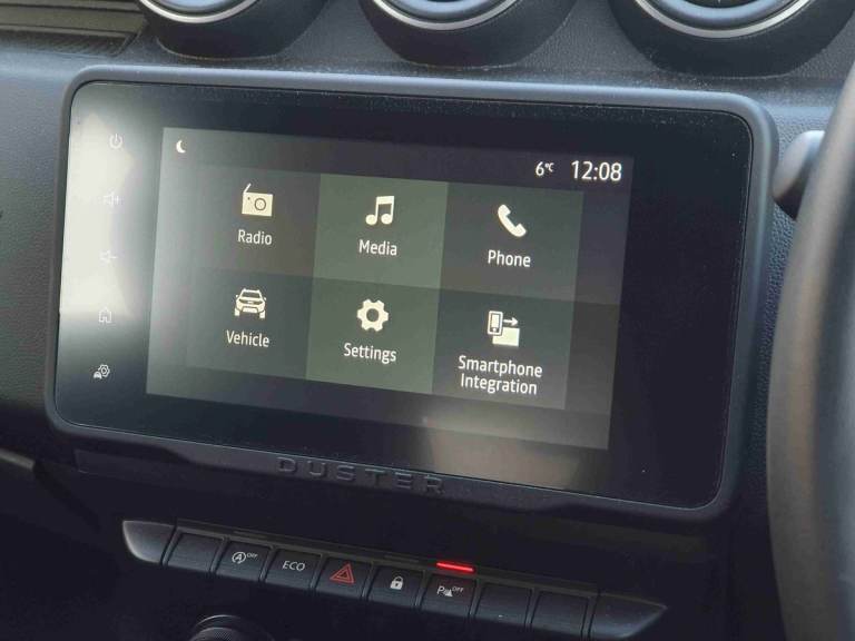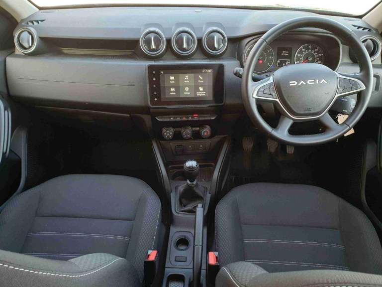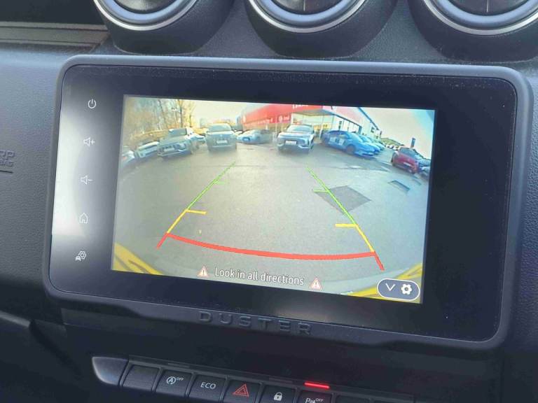 ..Cruise control and speed limiter, eCall emergency system, Eco mode, Electric power assisted steering, On board computer, odometer, trip computer, average fuel consumption, average speed, service indicator, outside temperature gauge, Rear parking sensors, Rev counter, Reversing camera, Stop/start system, 8'' Media display with smartphone replication, 2 usb sockets and 6 speakers, Dacia plug and radio/MP3/USB/bluetooth/DAB/steering wheel control, 3 speed windscreen wipers, Black longitudinal roof bars with Duster inscription, Black side sills, Black/satin chrome tailgate trim with Duster inscription in black background and lettering, Body coloured door handles, Chrome front grille with hot stamping, Chrome logo surround on steering wheel, Daytime running lights, Drivers window one touch up/down, Dusk sensor, Electric adjustable/heated door mirrors, Electric front windows, Electric rear windows, Front and rear body coloured bumpers, Front door sill protection strip, Front fog lights, Heated rear window, High level third rear brake light, Rain sensor, Rear side wing doors, Rear spoiler, Rear wash/wipe, Satin chrome door mirrors, Tinted windows, Underbody protection skid plates, Y shaped LED headlights with rear LED lights, 3 rear height adjustable headrests, 3 seat bench in 2nd row, 60/40 split folding rear seat, Backlighted steering wheel buttons, Boot light, Driver seat lumbar adjustment, Fabric decorative insert on door panels, Fabric upholstery, Front head restraints, Front passenger reading light, Gear shift indicator, Height adjustable driver seat, Height adjustable front and rear headrests, Height and depth adjustable steering wheel, High centre console with driver armrest, Isofix points for child seats in both outer rear seats, Manual air conditioning, Map pocket on front seat backs, Passenger sunvisor with vanity mirror, Rear passenger reading light, Satin chrome interior door handles, Satin chrome lower steering wheel insert, Single front passenger seat, Soft feel leather steering wheel, 3x3 point rear seatbelts, ABS and Emergency brake assist, ASR traction control with Electronic stability control, Child locks on rear doors, Door open visual and audible warning, Driver airbag, Driver and passenger seatbelt not fastened - visual and audible warning, EBD - Electronic brakeforce distribution, Front passenger airbag, Front passenger airbag deactivation, Front seatbelt pretensioners, Front side airbags, Height adjustable front seatbelts, Hill start