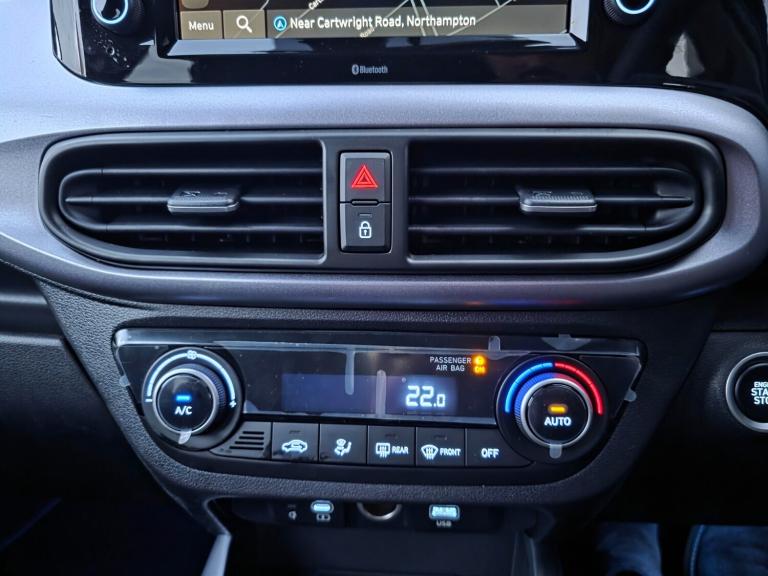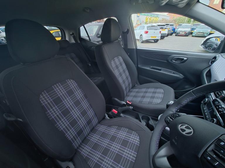 Boasting an incredibly low mileage of just 10 miles, this 2025 Hyundai i10 Premium represents a truly exceptional find. As a single owner vehicle, it comes with the assurance of careful stewardship. This stylish hatchback is equipped with a responsive 1.2 litre petrol engine, meeting Euro 6 emissions standards, making it an efficient choice for your daily journeys.Experience modern convenience with this i10 Premium, featuring wireless Android Auto for seamless smartphone integration and a wireless phone charger to keep you powered up on the go. Stay comfortable in all seasons with heated front seats and enjoy effortless parking thanks to the rear view parking camera. The climate control air conditioning ensures a pleasant cabin environment. With an impressive fuel economy of 55 mpg and a low insurance group, this Hyundai i10 Premium offers outstanding value and cost effective motoring compared to other vehicles in its class..Sat Nav / Camera / Carplay.8'' Touchscreen satellite navigation including mapcare and LIVE services, Apple car play/Android Auto, Bluelink mobile remote connectivity, Bluetooth connectivity with voice recognition, Cruise control, Driver attention alert system, eCall emergency call system, Forward Collision-Avoidance Assist (FCA) - Pedestrian/Cyclist, Full-width 4.2'' LCD instrument cluster, Intelligent speed limit assist, Lane departure warning system with lane keep assist - LKAS, Lane follow assist, PAS, Rear parking sensors, Rear view camera with guidelines, Roadside assistance, Tailgate, Trip computer, Wireless charging pad, 2 front/2 rear speakers, Front and rear USB-C ports, Front USB connection, Leading vehicle alert (LVA), Steering wheel audio, phone and cruise controls, 1 speed non intermittent rear windscreen wiper, Black finish on B pillars, Body colour door handles, Body coloured bumpers, Body coloured door mirrors, Electric folding door mirrors, Electric front windows, Electric rear windows, Electrically adjustable and heated door mirrors, Flat metal emblem, Front fog lights, Front grille in glossy black, Front intermittent wipers, Halogen bi-function headlights, Headlights inner with Black Blade design, Heated rear window, High beam assist, Indicator light on door mirrors, LED daytime running lights, Privacy glass for rear window, Rear roof spoiler with integrated LED brake light, Rear side wing doors, 12v power outlet - front, 3 seat bench in 2nd row, 60/40 split folding flat to floor rear seats, Air conditioning climate