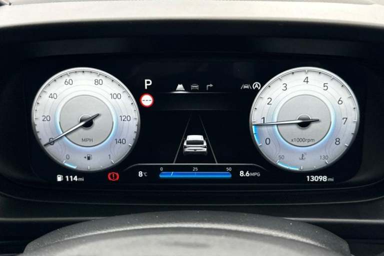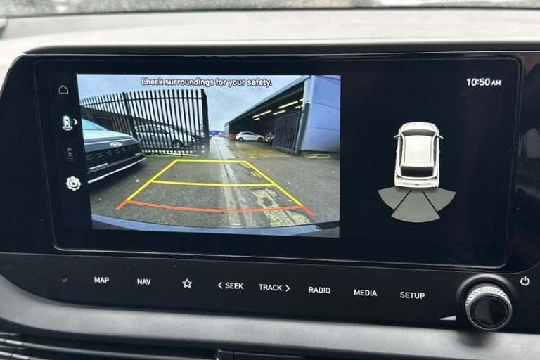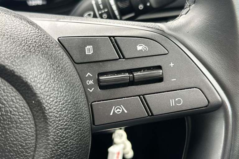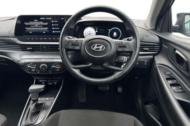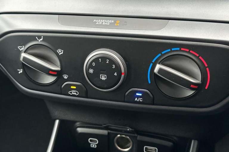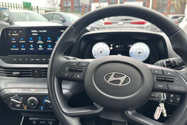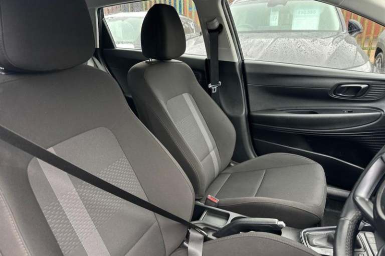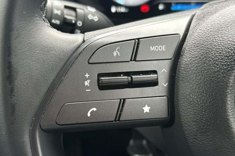 Air conditioning, Leather steering wheel, Power assisted steering, Rain sensor, Rear wiper, 16 alloy wheels, Adjustable head restraints, Floor mats, Cruise control + speed limiter, Front ventilated disc brakes, Rear parking sensor, Tyre pressure monitoring system, Cloth upholstery, Child locks on rear doors, 3x3 point rear seatbelts, Tyre repair kit, Electric adjustable heated door mirrors, Lane keep assist, Automatic headlights with dusk sensor, LED daytime running lights, LED Headlights, High beam assist, 3 seat bench in 2nd row, Autonomous emergency braking, Intelligent speed assist, Rear solid disc brakes, Intelligent speed limit warning, Lane follow assist, LED 3rd brake light, Single front passenger seat, Rear side wing doors, LED taillights, USB C port front, ABS with front and rear diagonally split, Forward collision assist with car, pedestrian and cycle detection, Rear view camera with dynamic guidelines, 10.25 touchscreen + navigation, 2nd Gen eCall, Repositioned flat metal hyundai emblem, Front grille mesh pattern design, Trailer wiring, 8 Touchscreen DAB Radio with android auto and apple carplay