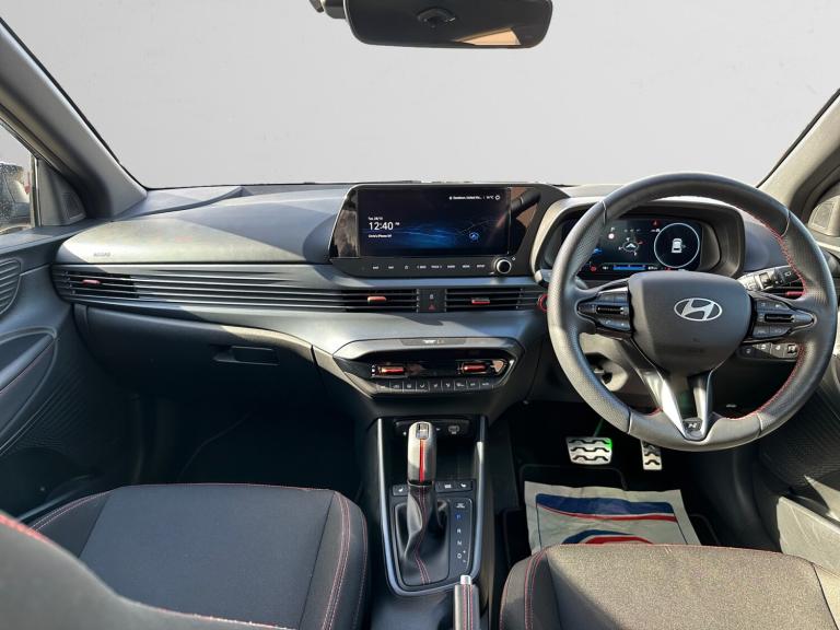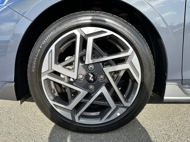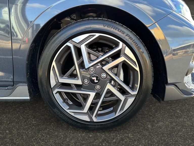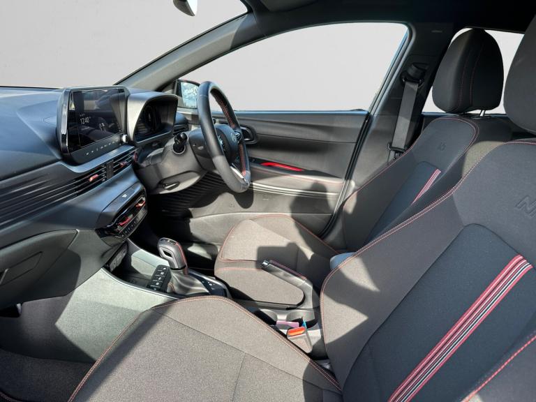 ..10.25'' Touchscreen satellite navigation including mapcare and live services, 2nd Gen eCall, 8'' Touchscreen DAB Radio with android auto and apple carplay, Apple car play/Android Auto, Driver's supervision instrument cluster with 10.25'' LCD display, E-call, Forward collision assist with car, pedestrian and cycle detection, Front parking sensor, Intelligent speed assist, Lane follow assist, Lane keep assist, MAP OTA updates, PAS, Rear parking sensor, Rear view camera with dynamic guidelines, Wireless charging pad, Bose premium sound system, USB C and USB A ports in front, USB C Port in rear, Automatic defog system for front windscreen, Automatic dimming rear view mirror, Automatic headlights with dusk sensor, Automatic windscreen wipers, Body colour door handles, Electric front and rear windows, Front fog lights, Heated door mirrors with electric adjustment and power folding function, High beam assist, LED daytime running lights, LED Headlights, LED positioning lights, LED taillights, Privacy glass - Rear windows and tailgate, Rain sensor, Rear roof spoiler with integrated LED brake light, Rear side wing doors, Rear wiper, Repositioned flat metal hyundai emblem, Shark fin antenna, Windscreen acoustic film, 3 seat bench in 2nd row, Adjustable head restraints, Air conditioning climate control, Automatic de-fog system for front windscreen, Cloth upholstery, Driver and passenger illuminated vanity mirrors with driver ticket holder, Floor mats, Front cup holder, Heated front seats, Heated steering wheel, Height adjustable driver's seat, Isofix, Leather wrapped steering wheel and gear knob, Luggage hooks, Multi colour ambient lighting, Rear Seats - Split Folding (60/40), Single front passenger seat, Sport metal pedals, Steering wheel remote controls, Tilt and telescopic steering wheel adjustment, 3x3 point rear seatbelts, Anti-lock brake system (ABS), Autonomous emergency braking, Child locks on rear doors, Driver and front passenger airbags, Rear seat alert, Side and Curtain airbags, Tyre pressure monitoring system, Immobiliser, Smart key with keyless entry and engine start/stop button, 17'' N Line black alloy wheels, Tyre repair kit