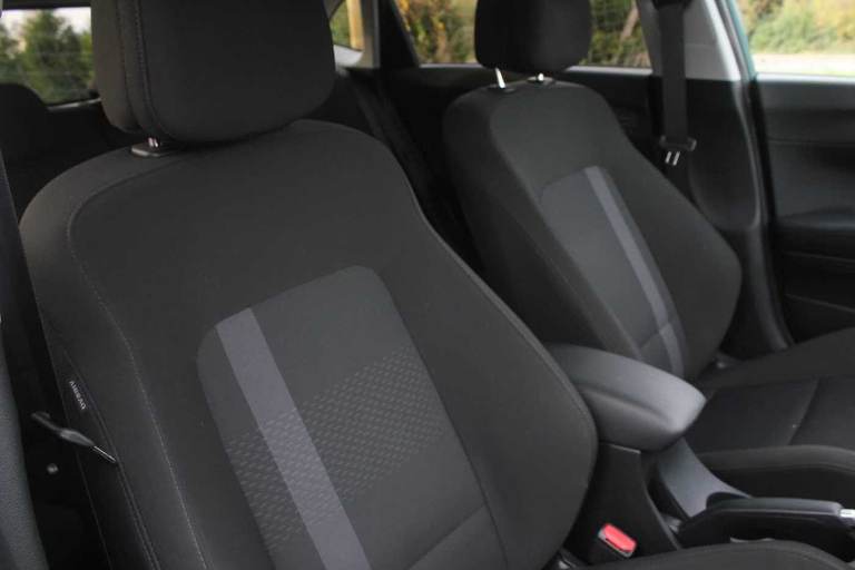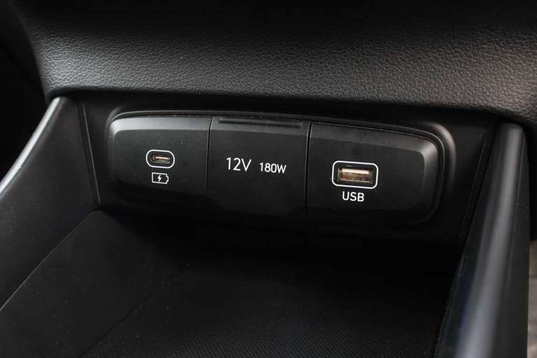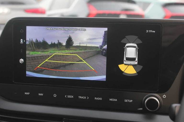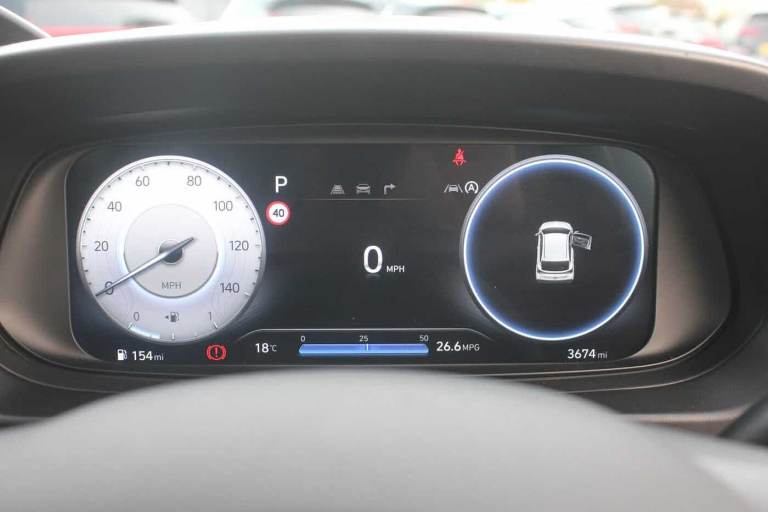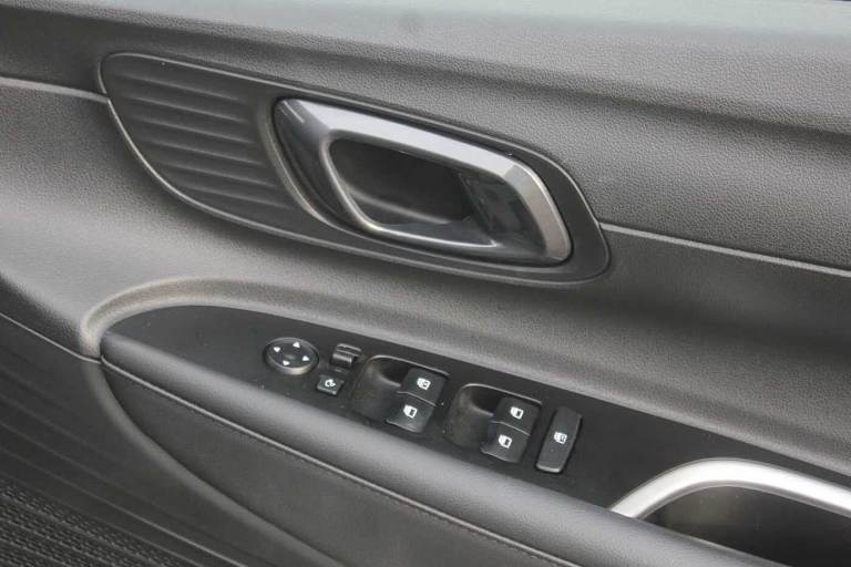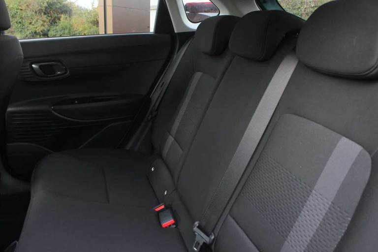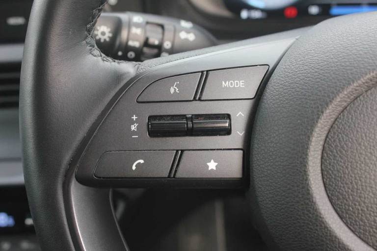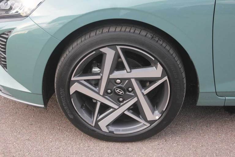 ..Exterior Features, Pearlescent paint, Safety, Cruise control + speed limiter, Paint - Pearlescent, Pearl - Mangrove green, Trim - Cloth, Cloth - Black, Exterior Features, Privacy glass - Rear windows and tailgate, Rain sensor, Rear wiper, Front grille mesh pattern design, Rear side wing doors, Repositioned flat metal hyundai emblem, Automatic headlights with dusk sensor, High beam assist, LED daytime running lights, LED Headlights, LED taillights, Safety, ABS with front and rear diagonally split, Autonomous emergency braking, Front ventilated disc brakes, Rear solid disc brakes, Forward collision assist with car, pedestrian and cycle detection, Front parking sensor, Intelligent speed assist, Intelligent speed limit warning, Lane follow assist, Lane keep assist, MAP OTA updates, PAS, Rear parking sensor, Rear view camera with dynamic guidelines, Electric adjustable heated door mirrors, Electric folding door mirrors, 3x3 point rear seatbelts, Child locks on rear doors, Tyre pressure monitoring system, Interior Features, Floor mats, Automatic air conditioning, Cloth upholstery, Heated steering wheel, Leather steering wheel, Multi colour ambient lighting, Miscellaneous, 10.25'' touchscreen + navigation, 2nd Gen eCall, 8'' Touchscreen DAB Radio with android auto and apple carplay, Audio / Communications, USB C port front, USB C Port in rear, Trim, 3 seat bench in 2nd row, Adjustable head restraints, Heated front seats, Single front passenger seat, Towing, Trailer wiring, Wheels, 17'' Alloy wheels, Tyre repair kit