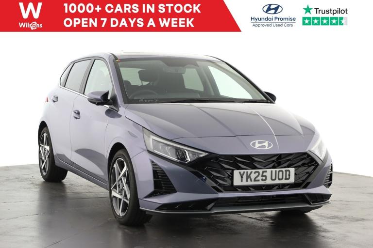 Hyundai I20 1.0T GDi Premium 5dr DCT.APPLE CARPLAY*ANDROID AUTO.10.25'' touchscreen + navigation, 2nd Gen eCall, 8'' Touchscreen DAB Radio with android auto and apple carplay, Forward collision assist with car, pedestrian and cycle detection, Front parking sensor, Intelligent speed assist, Intelligent speed limit warning, Lane follow assist, Lane keep assist, MAP OTA updates, PAS, Rear parking sensor, Rear view camera with dynamic guidelines, USB C port front, USB C Port in rear, Automatic headlights with dusk sensor, Electric adjustable heated door mirrors, Electric folding door mirrors, Front grille mesh pattern design, High beam assist, LED 3rd brake light, LED daytime running lights, LED Headlights, LED taillights, Privacy glass - Rear windows and tailgate, Rain sensor, Rear side wing doors, Rear wiper, Repositioned flat metal hyundai emblem, Trailer wiring, 3 seat bench in 2nd row, Adjustable head restraints, Automatic air conditioning, Cloth upholstery, Floor mats, Heated front seats, Heated steering wheel, Leather steering wheel, Multi colour ambient lighting, Single front passenger seat, 3x3 point rear seatbelts, ABS with front and rear diagonally split, Autonomous emergency braking, Child locks on rear doors, Front ventilated disc brakes, Rear solid disc brakes, Tyre pressure monitoring system, 17'' Alloy wheels, Tyre repair kit