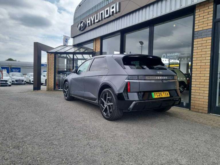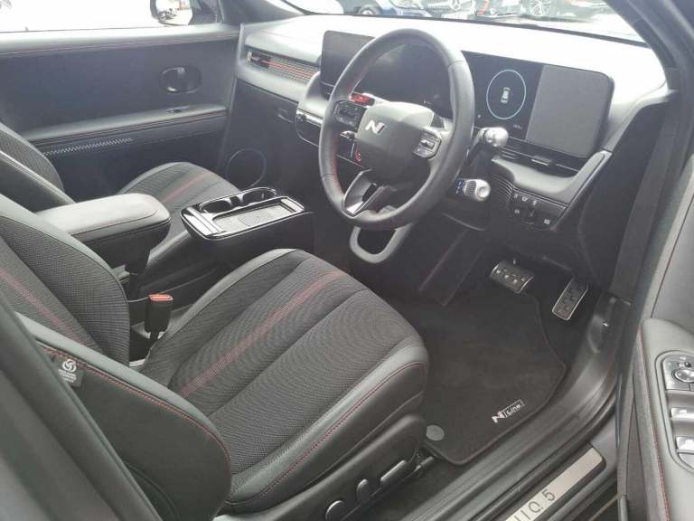 This Hyundai IONIQ 5 comes manufacturer approved, giving you complete peace of mind. Registered in 2025, this all-electric, four-wheel drive IONIQ 5 N Line offers a compelling blend of performance and practicality. The N Line trim adds sporty styling and enhanced features to this already impressive vehicle. Stay connected on the go with Bluetooth connectivity and voice recognition, and keep your devices charged wirelessly with the convenient wireless phone charging pad. On colder days, enjoy the luxury of a heated steering wheel, ensuring a comfortable driving experience.With a large boot space, this IONIQ 5 excels in practicality, making it ideal for families and those who require ample cargo room. The impressive 84 kWh battery provides a maximum range of 307 miles when new, meaning fewer stops on long journeys. When you do need to charge, the IONIQ 5 boasts a rapid public charging time, getting you from empty to 80% in just 20 minutes. Furthermore, acceleration from 0-62mph in 5.3 seconds means that this vehicle is faster than other similar vehicles.