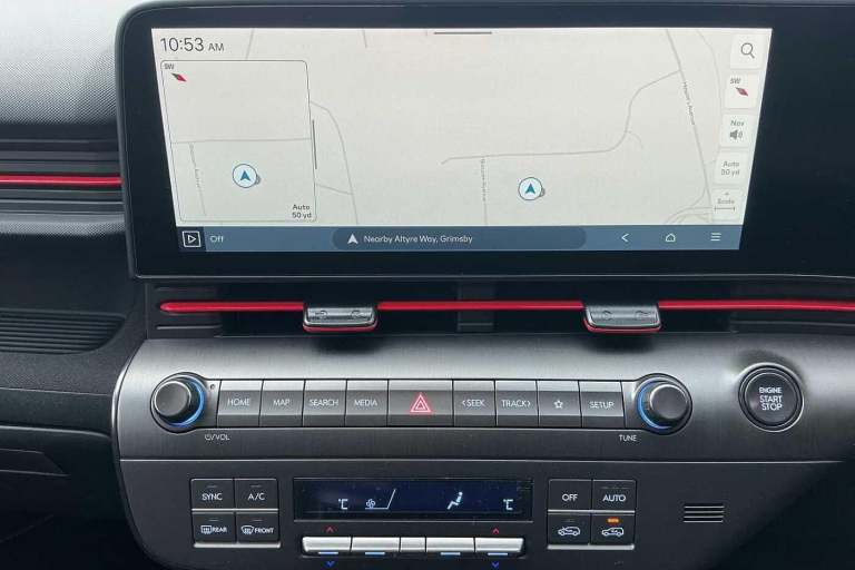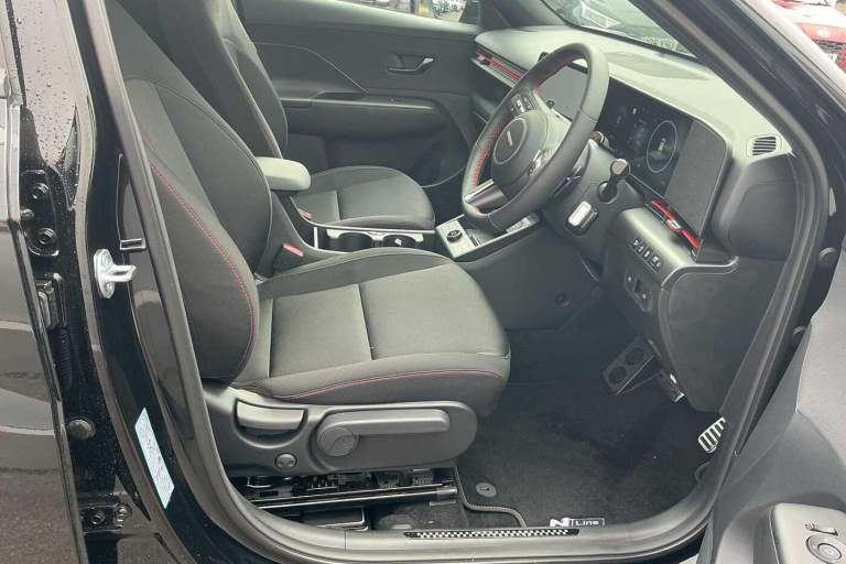 This 2025 Hyundai KONA T GDi N Line presents an exceptional opportunity with an incredibly low mileage of just 101 miles, making it practically new. As a Hyundai manufacturer approved vehicle, you can be assured of its quality and condition. This Euro 6 compliant model is equipped with a 1.6 litre petrol engine and features the sporty N Line trim. Inside, you'll find a heated steering wheel for added comfort, Bluetooth connectivity with voice recognition for seamless communication, automatic headlights that activate with a dusk sensor, and a convenient wireless phone charging pad.The KONA T GDi N Line stands out with its very low mileage, indicating it has barely been used and is in superb condition compared to other vehicles of its age. Its low insurance group rating is another significant advantage, suggesting lower running costs for the owner. This combination of advanced features, manufacturer approval, and minimal use makes this Hyundai KONA a truly appealing choice.