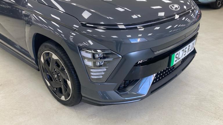 Ex-Demonstrator Hyundai Kona Electric 160kW N Line S 65kWh Auto – Low MileageStep into the future of electrified performance with this ex-demonstrator Hyundai Kona Electric N Line S, featuring the powerful 160kW motor, long-range 65kWh battery, and Hyundai’s latest sporty N Line styling. With low mileage and in exceptional condition, this nearly-new EV offers advanced technology, premium comfort and dynamic presence on the road.Sporty N Line S StylingThe N Line S model adds a distinctive, athletic look with exclusive design elements, including:Unique N Line exterior styling package19 N Line alloy wheelsLED headlights and taillightsGloss black mirrors and trim finishesSport-inspired interior with red stitching and N Line brandingLong-Range Electric PerformanceThe 160kW motor and 65kWh battery deliver:Strong, instant accelerationImpressive real-world driving rangeSmooth, silent and refined drivingMultiple drive modes including Eco, Normal and SportRapid charging capability for maximum conveniencePremium Equipment & TechnologyAs the top-spec N Line S, this Kona Electric is loaded with features, including:12.3” digital driver display12.3” touchscreen with satellite navigationApple CarPlay & Android AutoWireless charging padBose premium sound systemHeated and ventilated front seatsHeated rear seatsHeated steering wheelKeyless entry and startPanoramic roof (where fitted)Comfort & PracticalityWith its spacious interior and clever design, this Kona offers:Supportive N Line sports seatsExcellent boot space for daily useHigh-quality cabin materialsSmooth, agile handling suited to city and motorway drivingAdvanced Safety & Driver AssistanceEnjoy complete confidence thanks to a full suite of safety systems:Blind Spot Collision AvoidanceLane Keep Assist & Lane Follow AssistSmart Cruise ControlForward Collision-Avoidance AssistRear Cross-Traffic Collision WarningSurround View MonitorLow Mileage, Excellent ConditionAs an ex-demo model, this vehicle has been carefully maintained, kept in superb.Climate Control, Metallic Paint, Cruise Control, Satellite Navigation, Heated Seats, DAB Radio, Bluetooth, Parking Sensors, Low Mileage, USB, Electric Seats, Diamond Cut Alloy Wheels, Adaptive cruise, Keyless Entry-Push Button Start, Apple-Android Play, Rear Camera, Electric Opening Tailgate, Auto Lights, Electric Folding Mirrors, Lane Departure& Rain Sensors, Floor mats, Electric rear windows, Rear wiper, Tinted glass in front and rear doors, Automatic windscreen wipers with rain sensor, Privacy glass - Rear windows and tailgate, Windscreen auto defog function, Electric front windows with anti-trap mechanism and one touch control, Solar glass with front door glass and windscreen, Electronic stability control, Hill start assist control (HAC), Downhill brake control, Electric parking brake, Anti-lock brake system (ABS), Bluetooth connectivity with voice recognition, Wireless phone charging pad, Roadside assistance